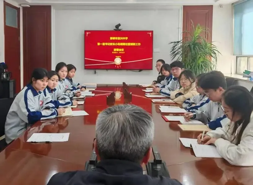 为搭建校生高效沟通桥梁,发挥学生主体作用、助力校园治理提质增效,邯郸市复兴中学第一届书记校长小助理聘任暨调研工作部署会议如期召开,专职副书记郭庆华、党宣办主任侯丽娟、办公室主任闫志雷及全体新晋小助理参会。