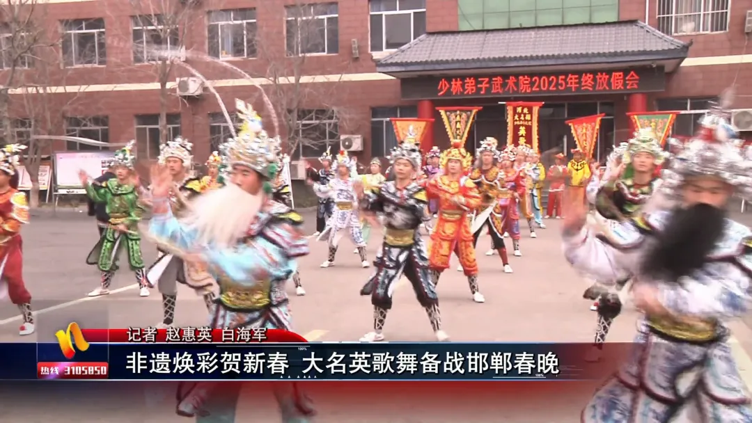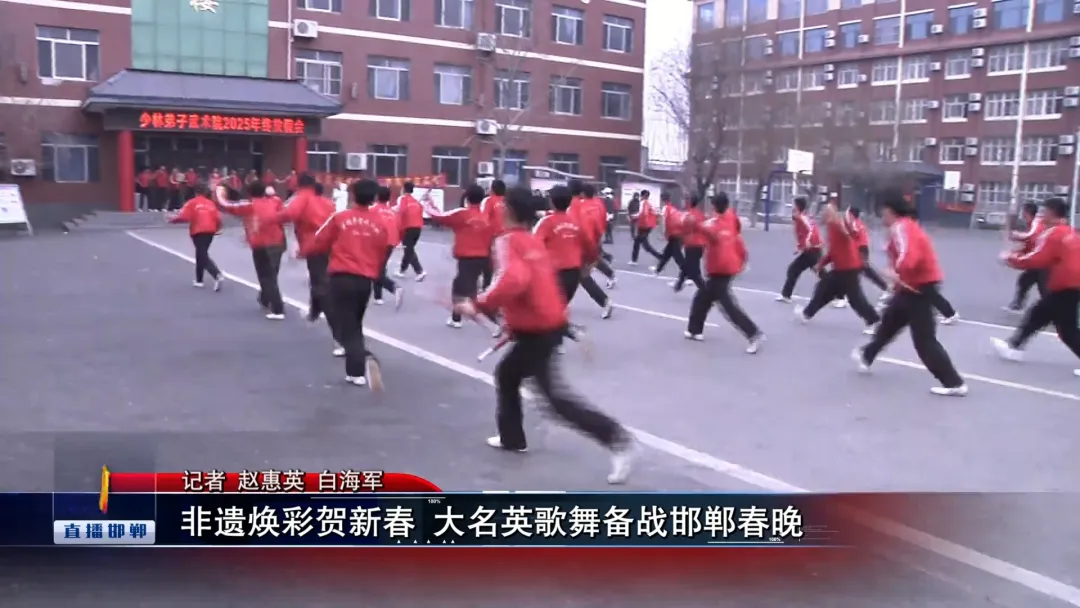 随着2026年邯郸市春节联欢晚会的脚步日益临近,各类特色节目正在紧锣密鼓地排练中。近日,记者走进大名少林弟子武术院,探班备受期待的大名英歌舞表演团队,感受非遗文化与武术碰撞的新春活力。 排练现场,一股热血激昂的气息扑面而来。几十名英歌舞演员身着精致的服饰,俨然化身水浒好汉,精气神十足。他们双手各持一根木质短棍,随着鼓点节奏上下翻飞、左右对击,时而马步稳扎、时而弓步前冲,时而转身背后击棒,刚劲雄浑的动作整齐划一,展现出英歌舞独有的豪迈气势。