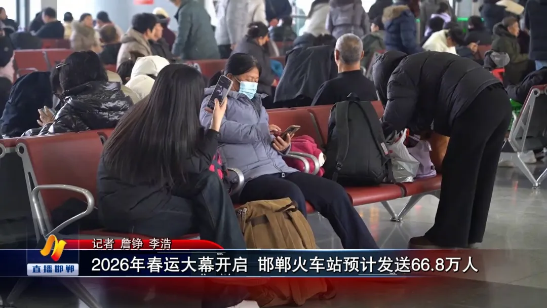 在邯郸火车站候车室记者看到,这里早已氤氲起浓浓的春节气息,喜庆的红装点着候车大厅的每个角落,与旅客们归乡的期盼、游客们赴邯的欣喜交织,年味满溢。旅客们或手拎满载年货的行李、或牵着家人的手有序落座。轻声的交谈、行李的滚轮声与车站温馨的广播提示声交织,与此同时,一批批专程来邯郸过年的游客也陆续抵达。 记者了解到,2026年春运自2月2日起至3月13日止,共计40天。今年春节假期长达9天,且春节为2月17日,较往年偏晚。春节前后学生、务工、探亲、旅游等客流叠加,集中度较高,预计2026年春运邯郸火车站发送旅客66.8万人,日均1.67万人。