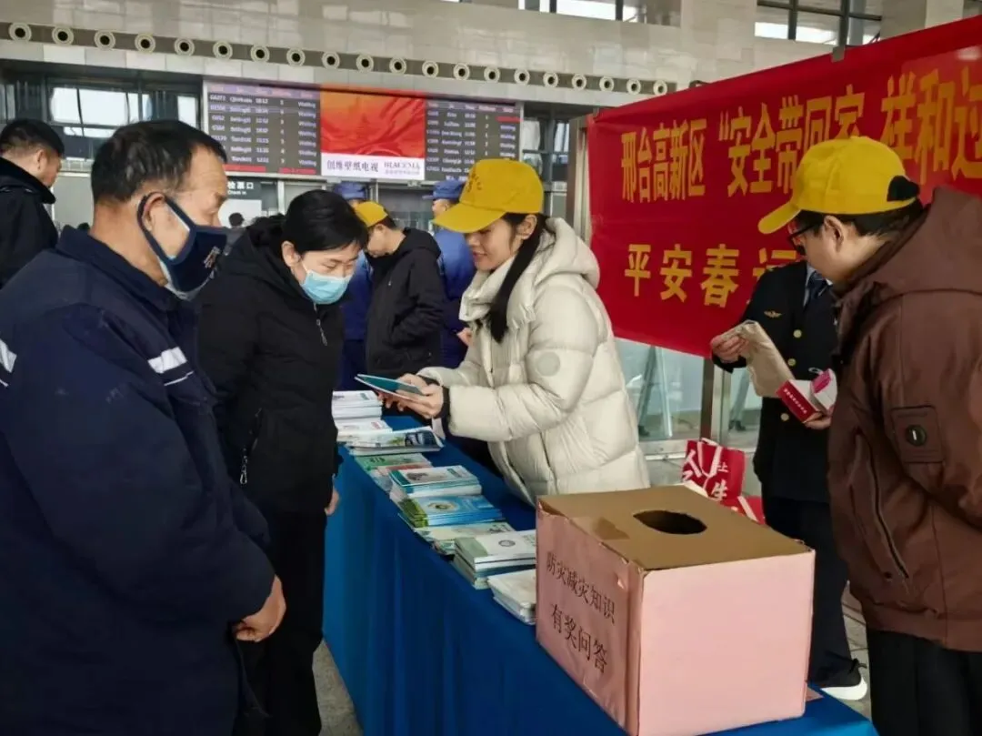 春运启幕,温情随行。2月2日上午,邢台高新区应急管理分局联合相关部门在邢台东站开展“安全带回家,祥和过大年”主题志愿服务宣传活动,为春运首日增添安全保障,为返乡旅客送上新春祝福。