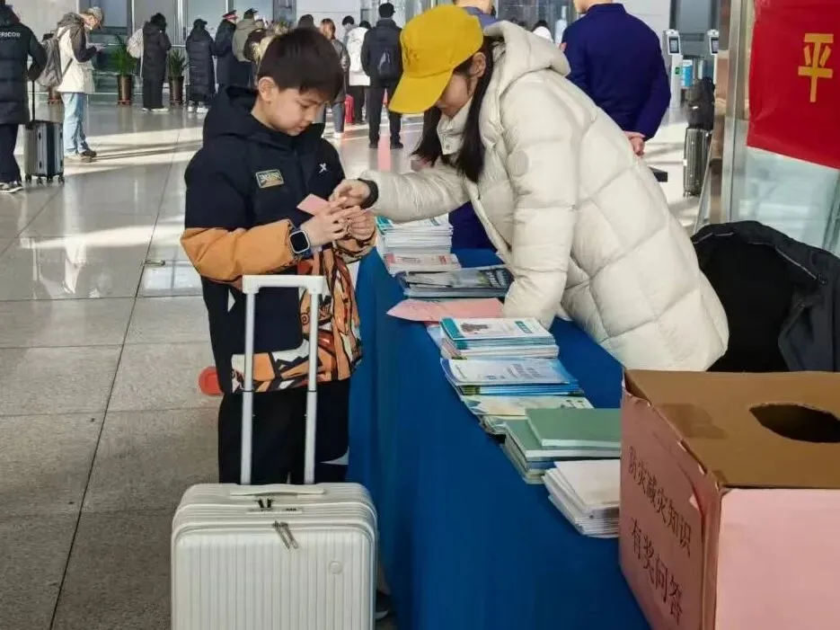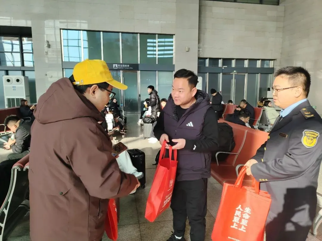 各部门联合设立的宣传咨询台前人来人往,工作人员向过往旅客发放安全知识手册等宣传资料,并以小分队形式深入旅客身边,围绕春节出行交通安全、节假日期间燃气安全等常识,向旅客提供咨询讲解。消防救援大队专门设置的消防装备展示区吸引了众多旅客驻足,消防员现场演示常用消防器材的使用方法,详细讲解春节期间家庭用火用电用气安全注意事项和火灾逃生技巧,帮助大家提升安全防护能力。本次活动还特别设置了有奖竞答环节,题目紧扣春运安全、居家安全等与生活息息相关的各类安全知识,旅客们积极参与、踊跃作答。工作人员为参与答题的旅客送上小礼品,大家在轻松愉悦的互动中加深了对安全知识的记忆与理解。