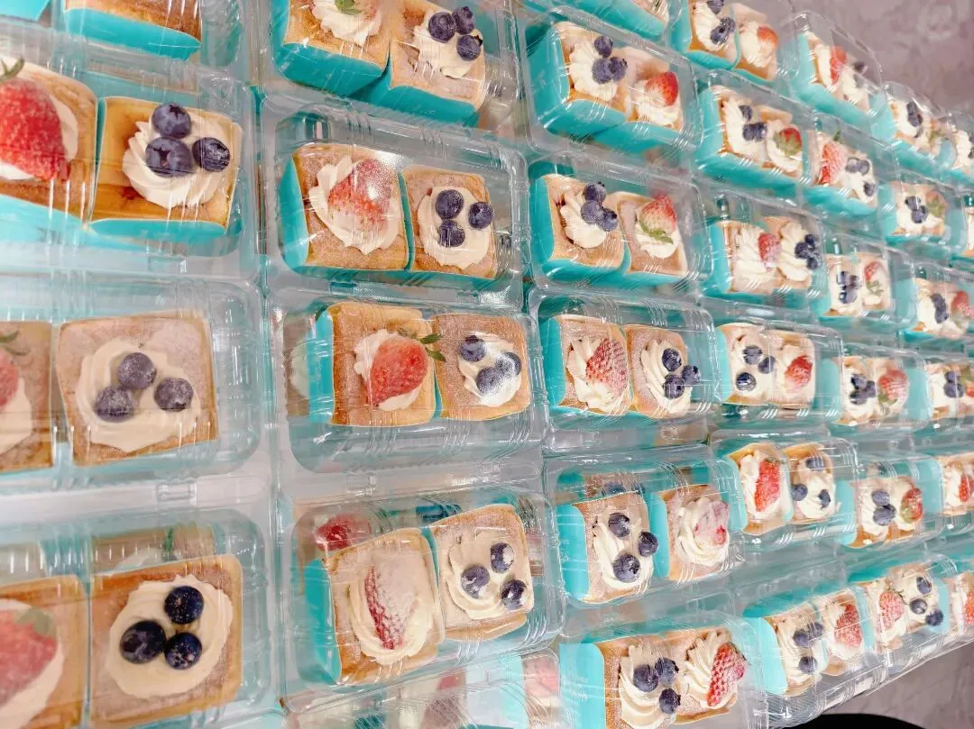 午休过后,教学楼一楼大厅一改往日的安静,变得热闹起来。几张长桌并排铺开,一盒盒新鲜出炉的蛋糕整齐摆放,奶油的香甜混着麦香,顺着走廊飘到各个教室。