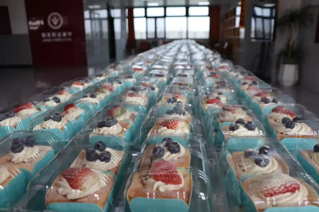 立春将至,年味越来越浓,寒假也近在眼前。邢台市精英职业高级中学的校园里,期末备考的节奏正紧,同学们埋首刷题、老师们熬夜备课,整个校园都浸在“紧张又充实”的氛围里。今天,在教学楼一楼的大厅,学校精心准备了一批香甜可口的小蛋糕,准备逐一分发到每一位学生手中。