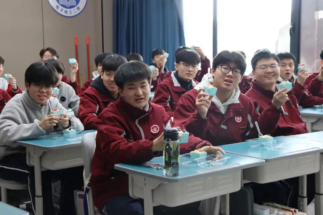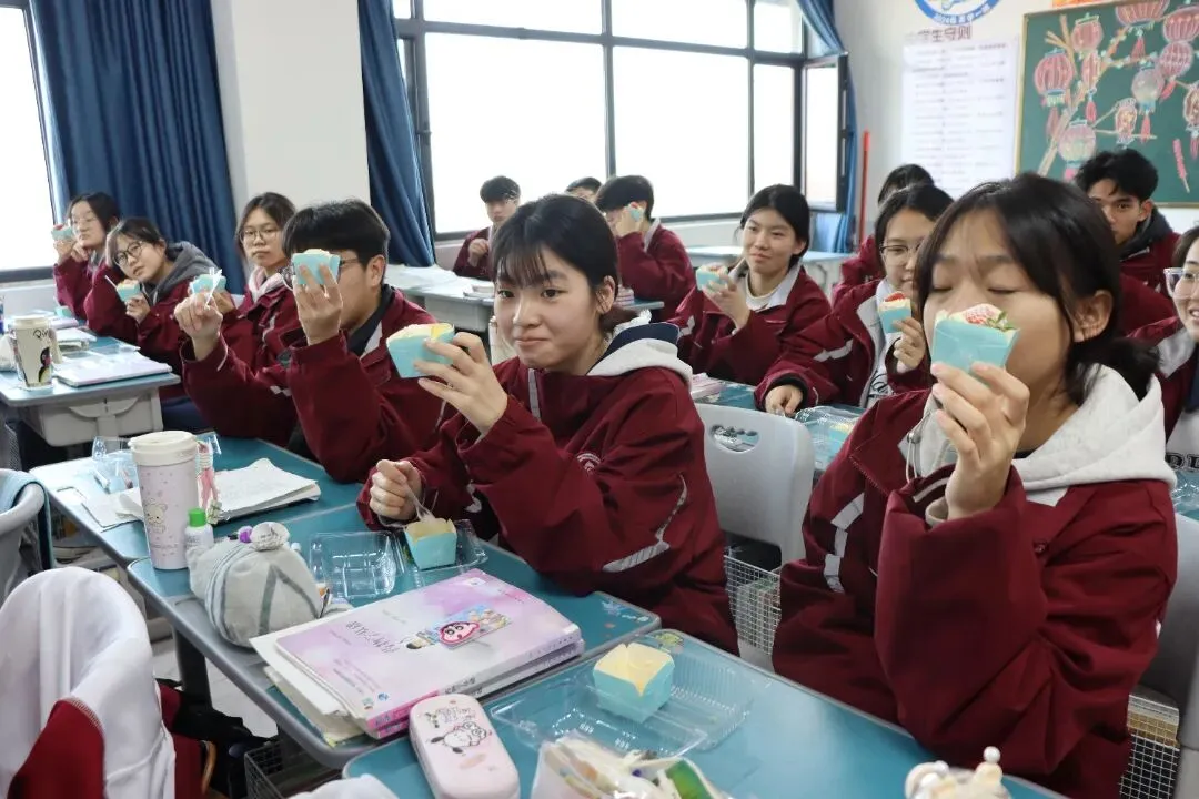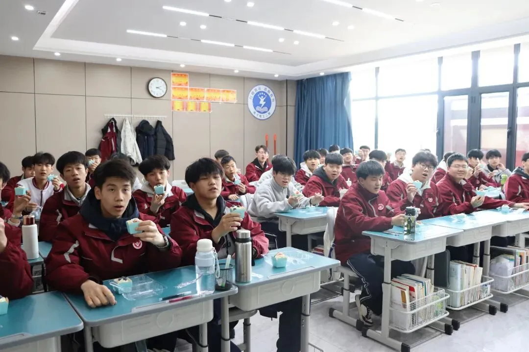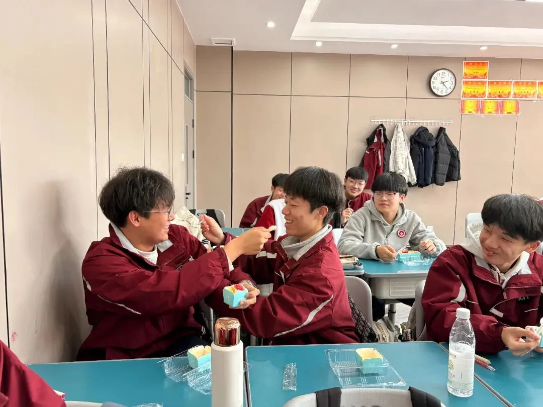 没有复杂的仪式,一块蛋糕、一句叮嘱、一张笑脸,却藏着学校最实在的关怀。这个冬天,因为教学楼里的这份甜而格外温暖;这场备考,因为学校的用心而更有底气。期待同学们带着优异的成绩,奔赴甜蜜的寒假与团圆的新年。
