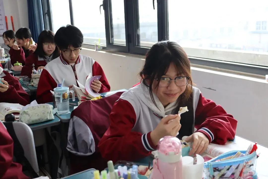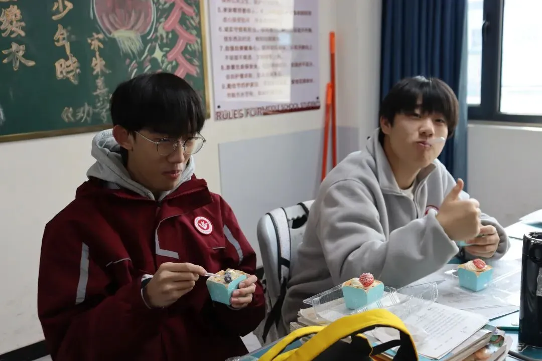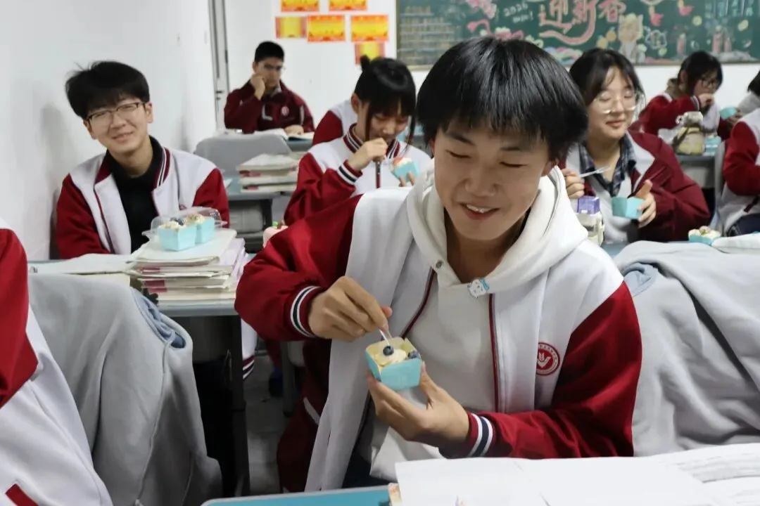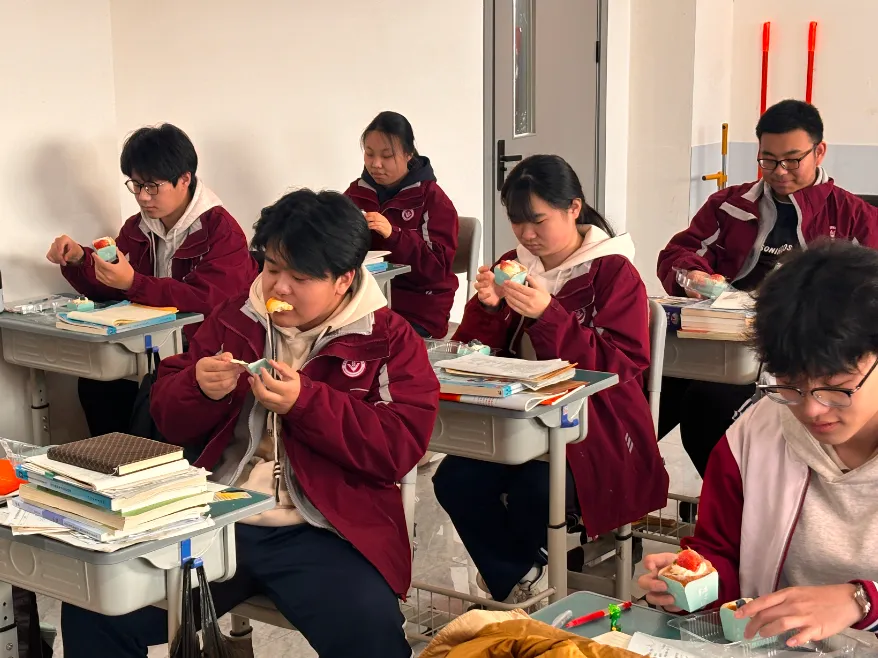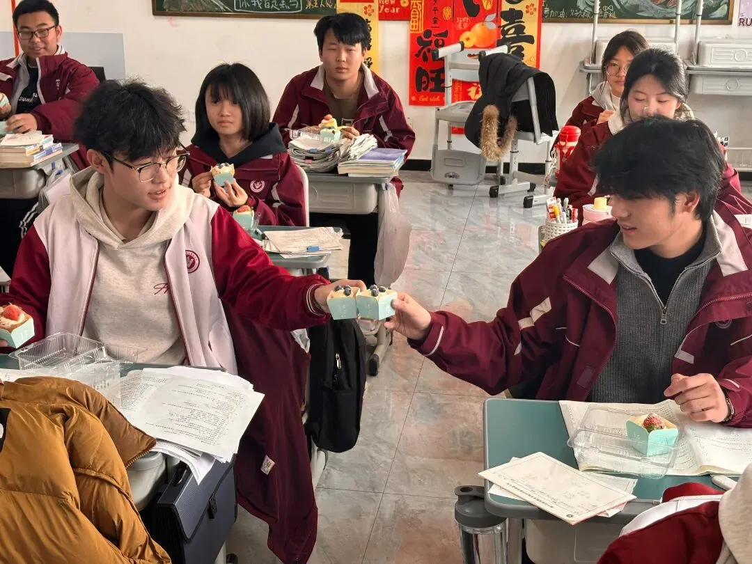 没有复杂的仪式,一块蛋糕、一句叮嘱、一张笑脸,却藏着学校最实在的关怀。这个冬天,因为教学楼里的这份甜而格外温暖;这场备考,因为学校的用心而更有底气。期待同学们带着优异的成绩,奔赴甜蜜的寒假与团圆的新年。