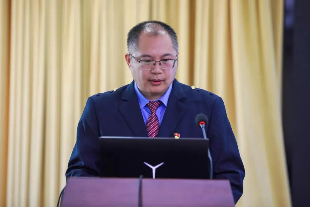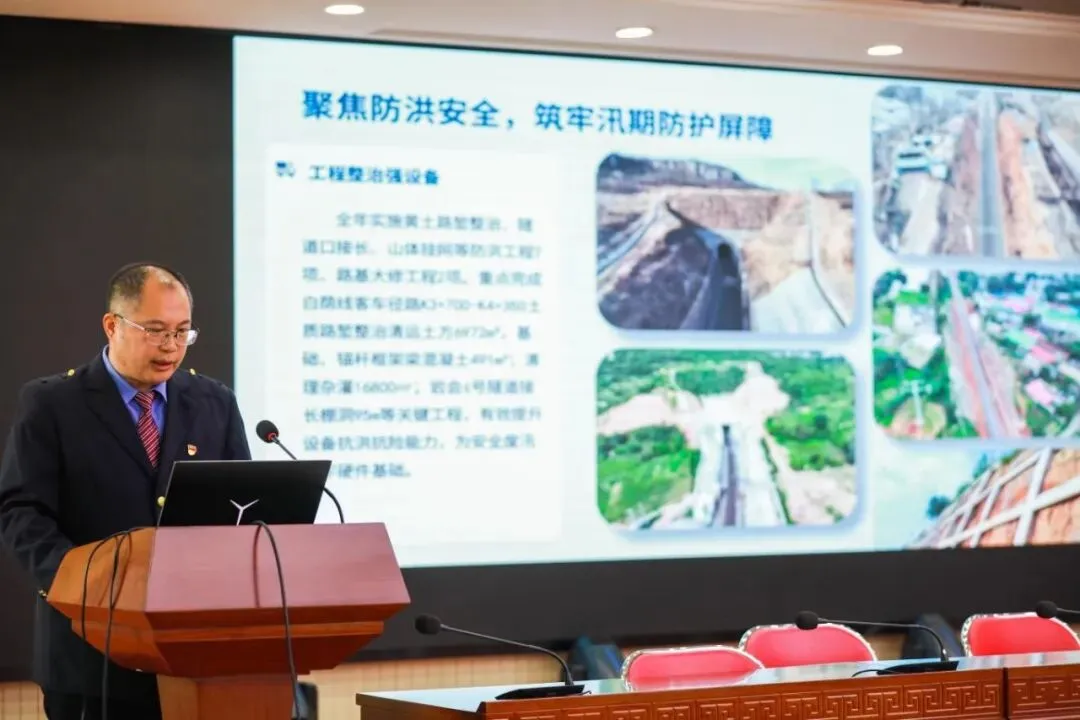 总工程师李志学宣读2025年度劳动保护先进和铁路文明家庭表彰决定。