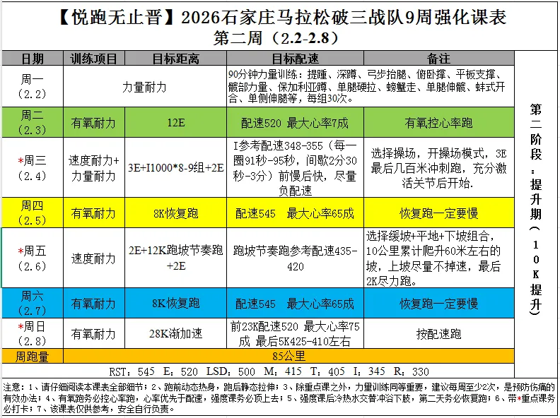 >一起PB,2026石家庄马拉松破三战队9周强化,第二周课表!