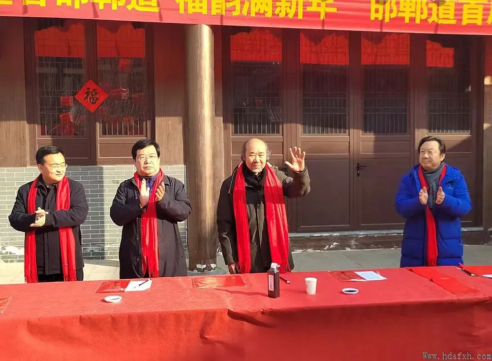 文联副主席李雪明讲话中提到:“首先,向邯郸道历史文化街区工作专班办公室、市产投集团、市书法家协会表示衷心的感谢,向闻讯而来、共享文化盛宴市民朋友送上新春问候。其次,此次活动以书法为媒,让笔墨书香与历史文脉相互交融,即是对“强基工程”文化助力基层精神文明建设行动的生动践行,更是将优秀文化资源送到群众家门口,让千年文脉在新时代焕发生机的具体体现。最后,市文联希望各文艺协会要积极联动协作、优化资源,让文艺与文旅深度融合,让更多的朋友了解邯郸道、热爱邯郸道。”