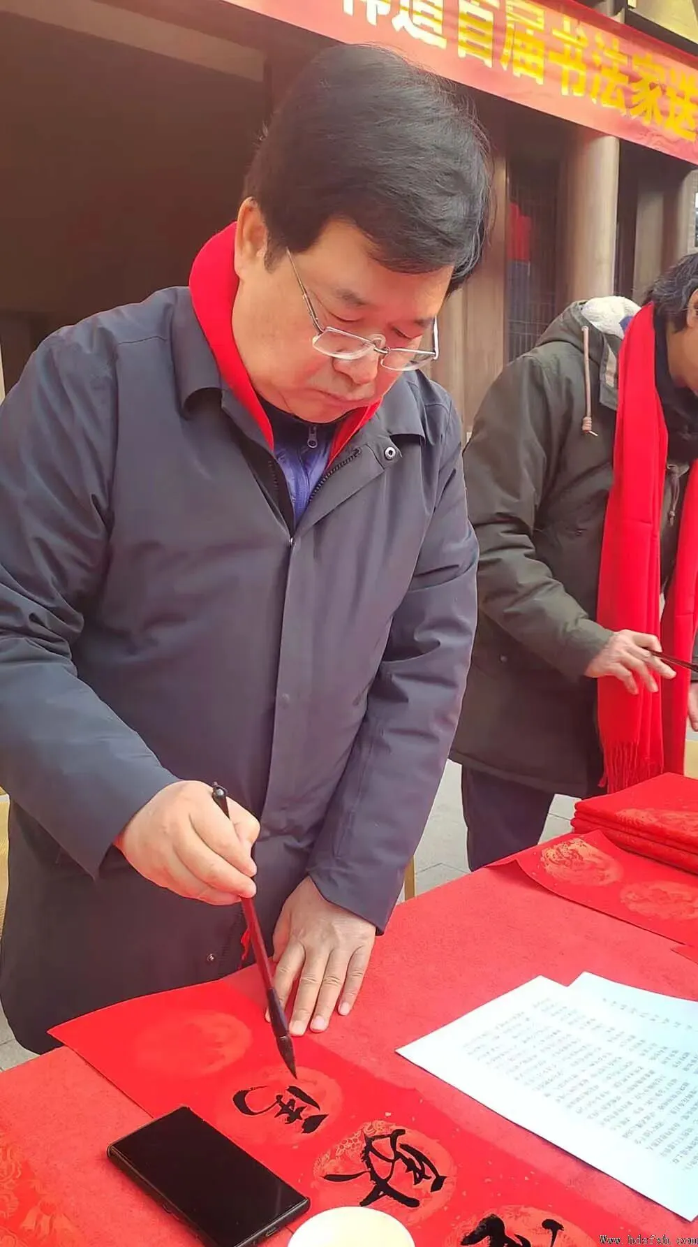 邯郸市人大原副主任、市书协顾问李文海,中国艺术研究院特聘研究员、意大利艺术研究院荣誉院士、俄罗斯列宾美院客座教授、省书协副主席、市书协终身名誉主席韩玉臣,邯郸市政府副秘书长、邯郸道历史文化街区工作专班办公室主任田东,市城管执法局党组成员副局长、邯郸道历史文化专班办公室副主任高照亮,邯郸市文联党组成员、副主席李雪明,中书协理事、市文联副主席、市书协主席李琦,市书协党支部书记陈惠永,市书协副主席关建洲、赵继成、王䒥苙、市书协副主席兼秘书长郜峰,市书协副主席韩建军、杜春林、李献忠、贾红敏,以及部分副秘书长、理事等,与游客和商户500多人参加了活动。