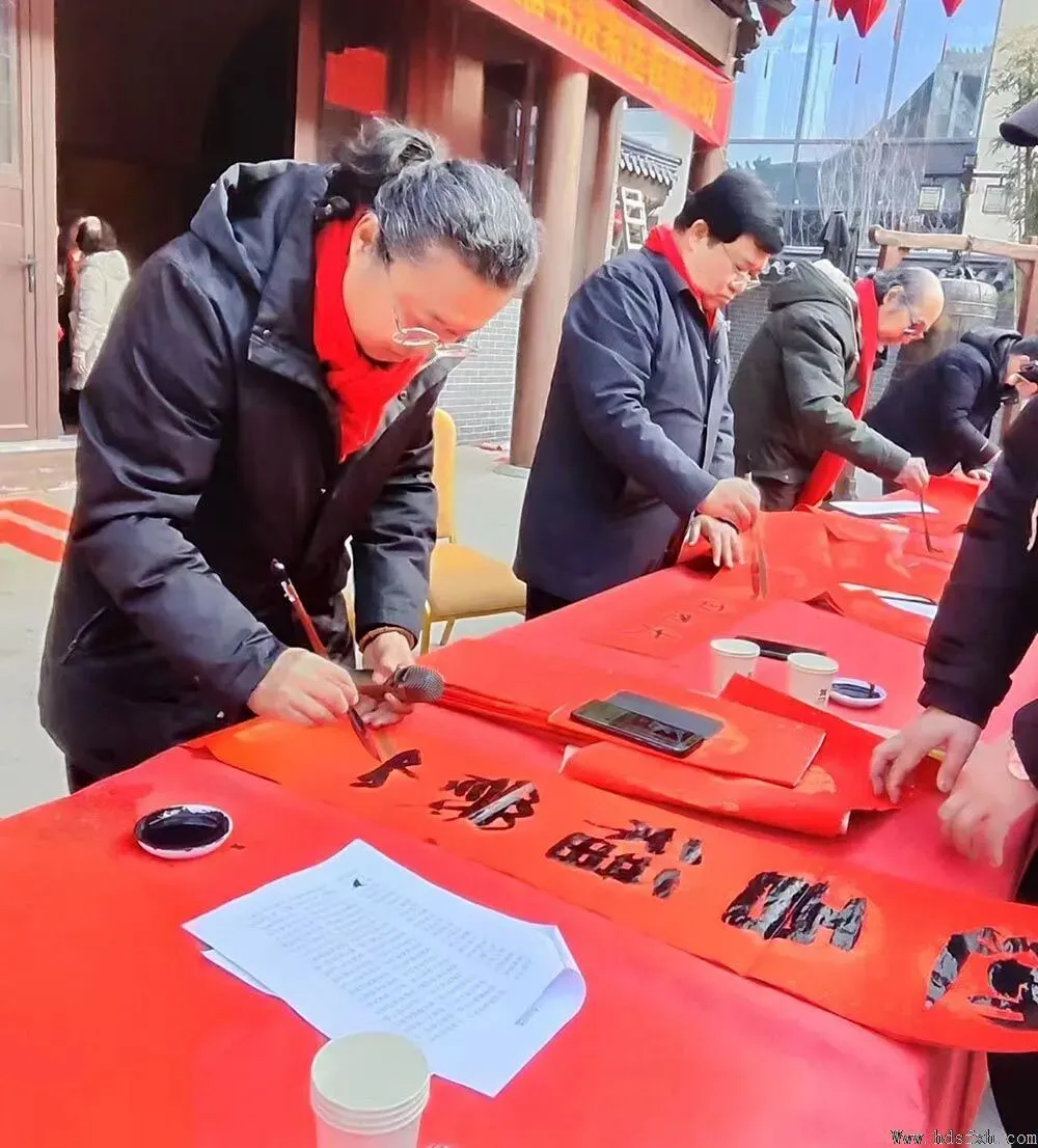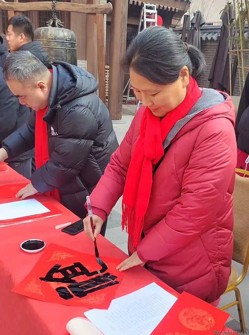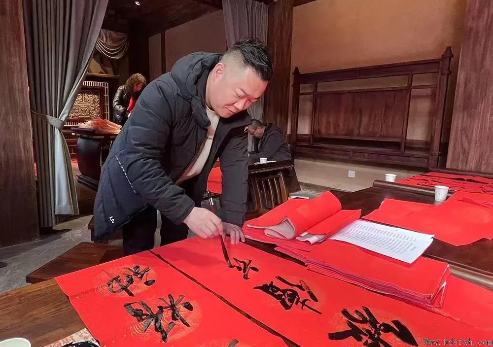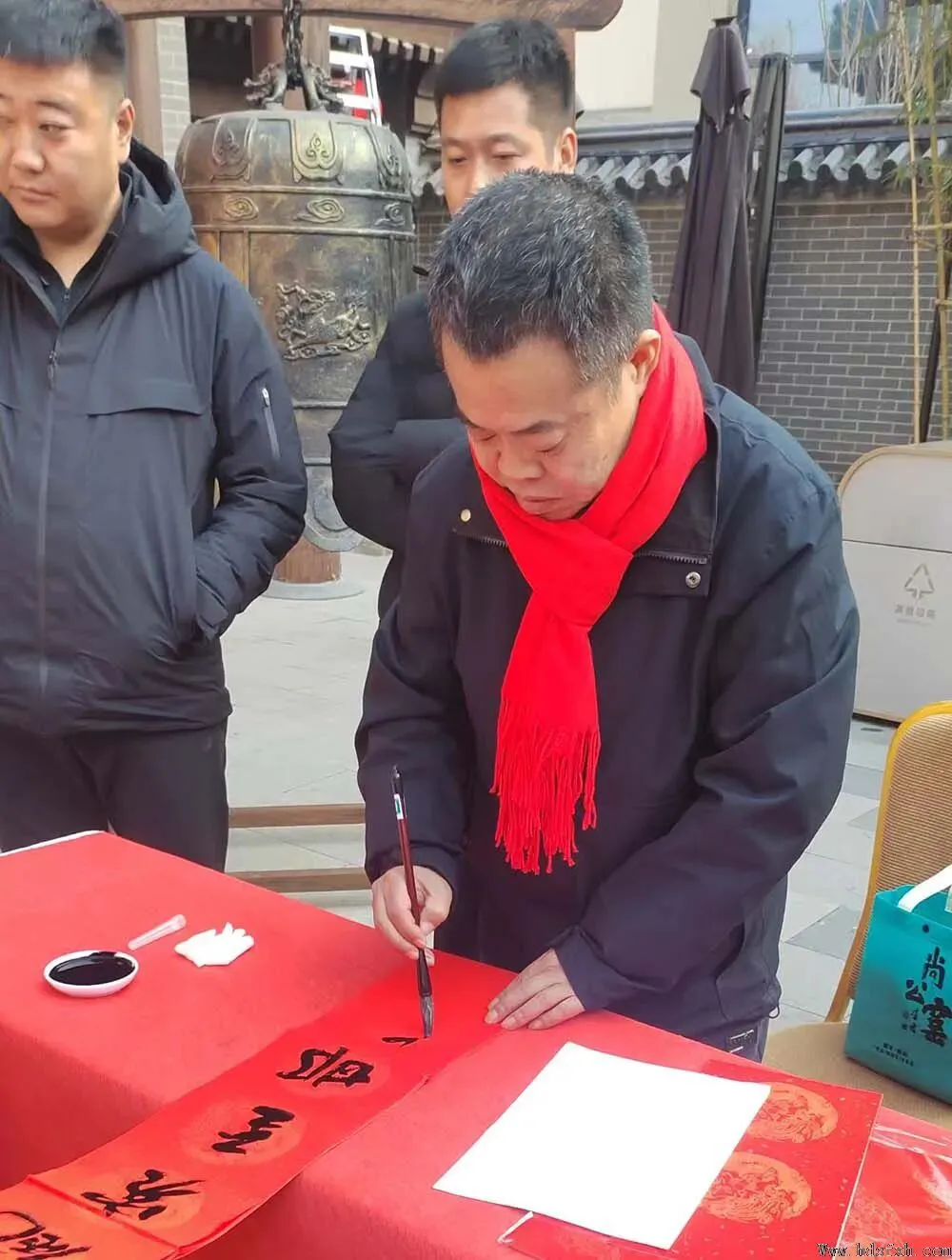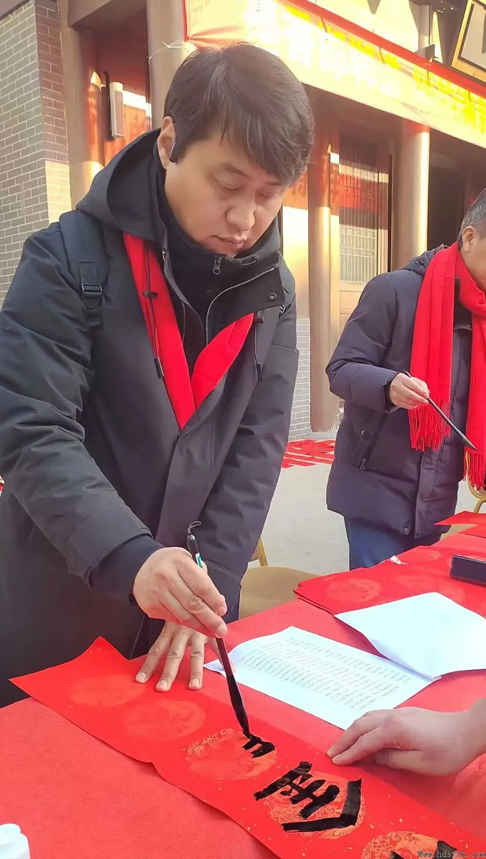 笔会环节,现场气氛热烈活跃。邯郸道的游客与商户们纷纷挑选心仪的春联词句,有序排队求字。书家们则凝神挥毫、泼墨抒怀,围绕新春主题,精心创作春联、福字800余幅,书法作品60余件。一撇一捺间,既有新春佳节的喜庆氛围,更饱含着对邯郸道蓬勃发展的美好祝愿。