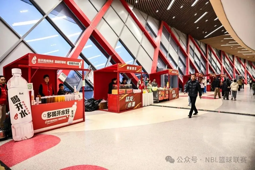 本次赛事不仅是竞技的舞台,更成为链接多元消费场景的关键纽带,全力推动赛事“流量”转化为发展“增量”。观众环廊处,精心打造的赛事集市汇聚了篮球周边、本土特色美食与趣味互动体验,让热烈的赛场氛围延伸至充满烟火气的休闲空间,实现了观赛体验与生活温度的深度融合。