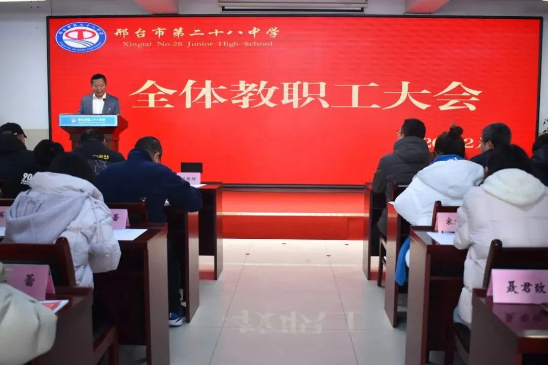 为全面总结2025年度学校各项工作,明确假期工作部署与新学期发展方向,2026年2月2日,邢台市第二十八中学召开全体教职工大会。