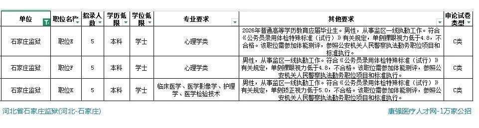 3.职位条件中“退役大学生士兵”是指以下两类人员:一是从河北省应征入伍、2025年服役期满退出现役,入伍前取得普通高等学历教育大学专科以上学历的退役士兵;二是大学期间从河北省应征入伍、服役期满退出现役后复学,2026年应届毕业的普通高等学历教育大学专科以上学历的退役士兵。