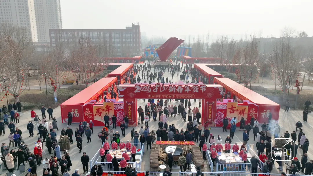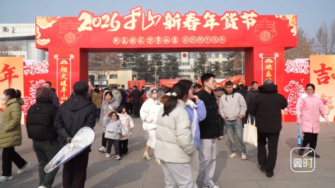 冀时新闻报道(河北台 杜岩卿 平山台 闫鹏飞 郜茜 王文芳 通讯员 王丽华 焦洛)1月31日,位于石家庄市平山县城的人民公园热闹非凡,2026新春年货节在这里开幕,充满浓郁平山特色的年货烟火气十足。在这里同步举行的拔河超级联赛使现场气氛更加火热,文商融合给平山人民带来了热气腾腾的年味。