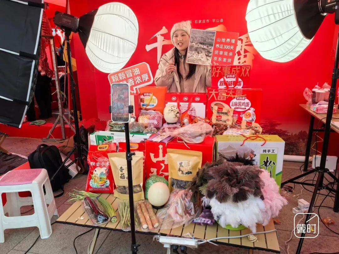 今天我们“千品万播”直播间给大家带来了10余种平山当地的农特色产品,除了蛋类、肉制品,还有一些山货类的产品。今天现场,我们反响比较好的就是鸵鸟蛋、鸵鸟肉,还有鸭蛋类制品。