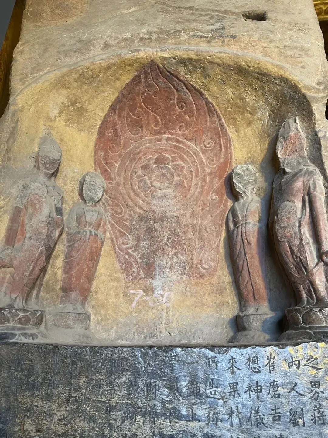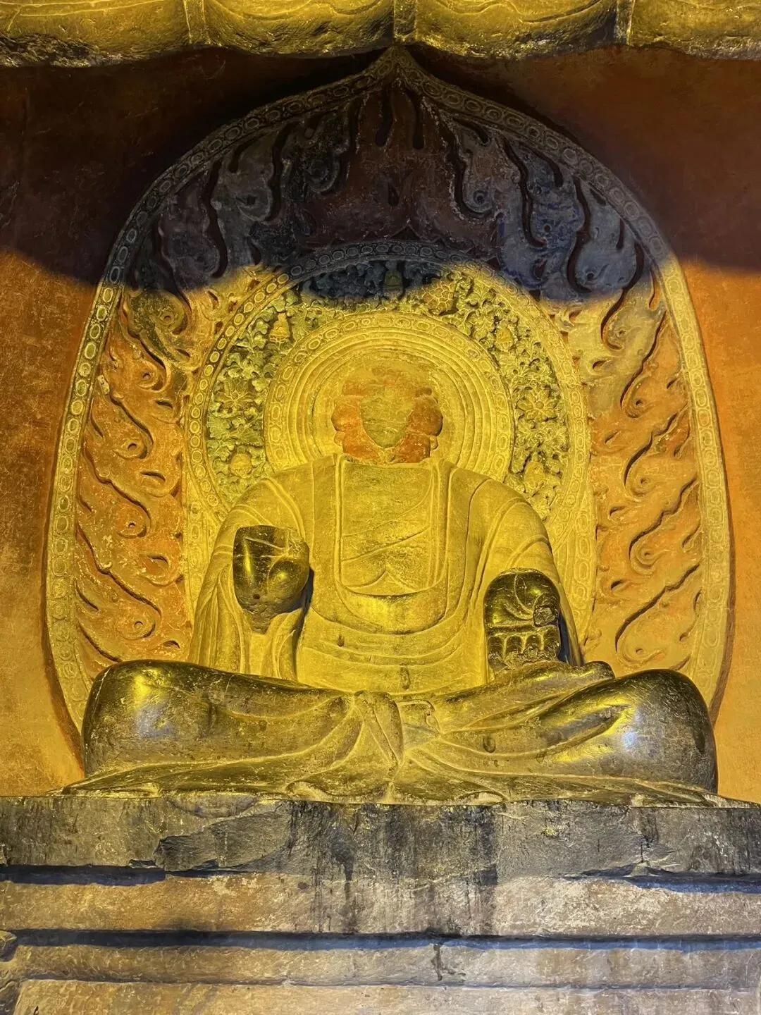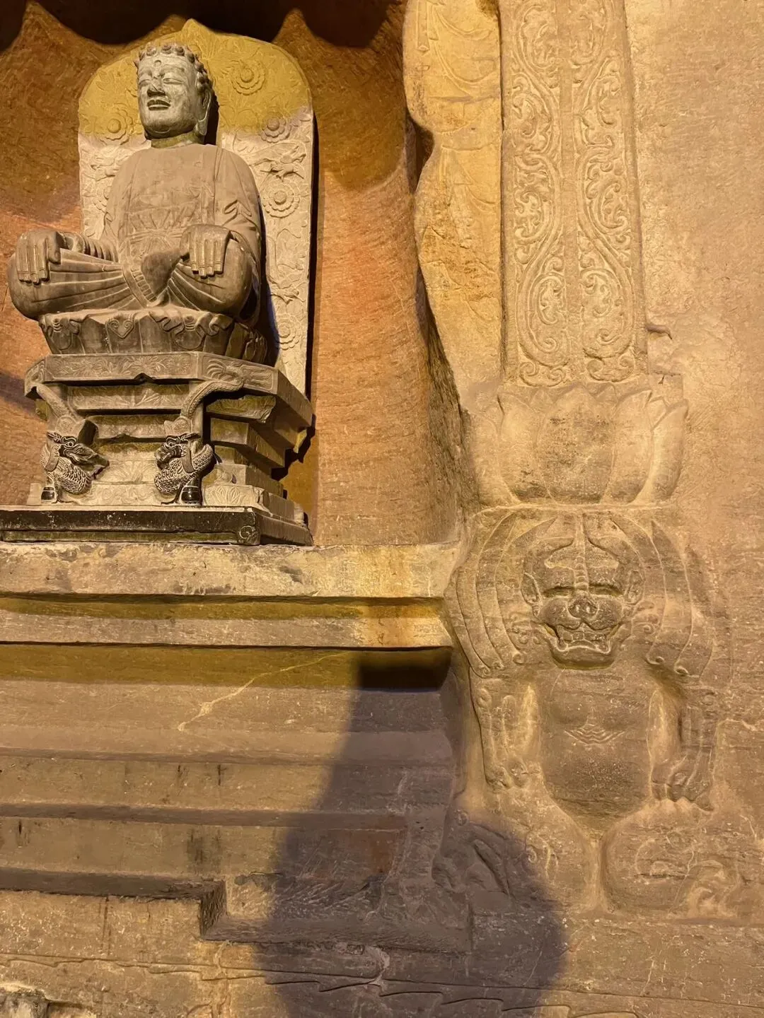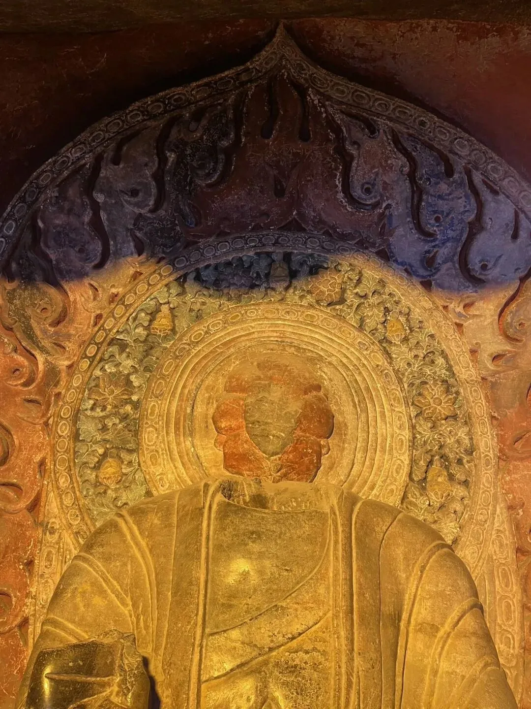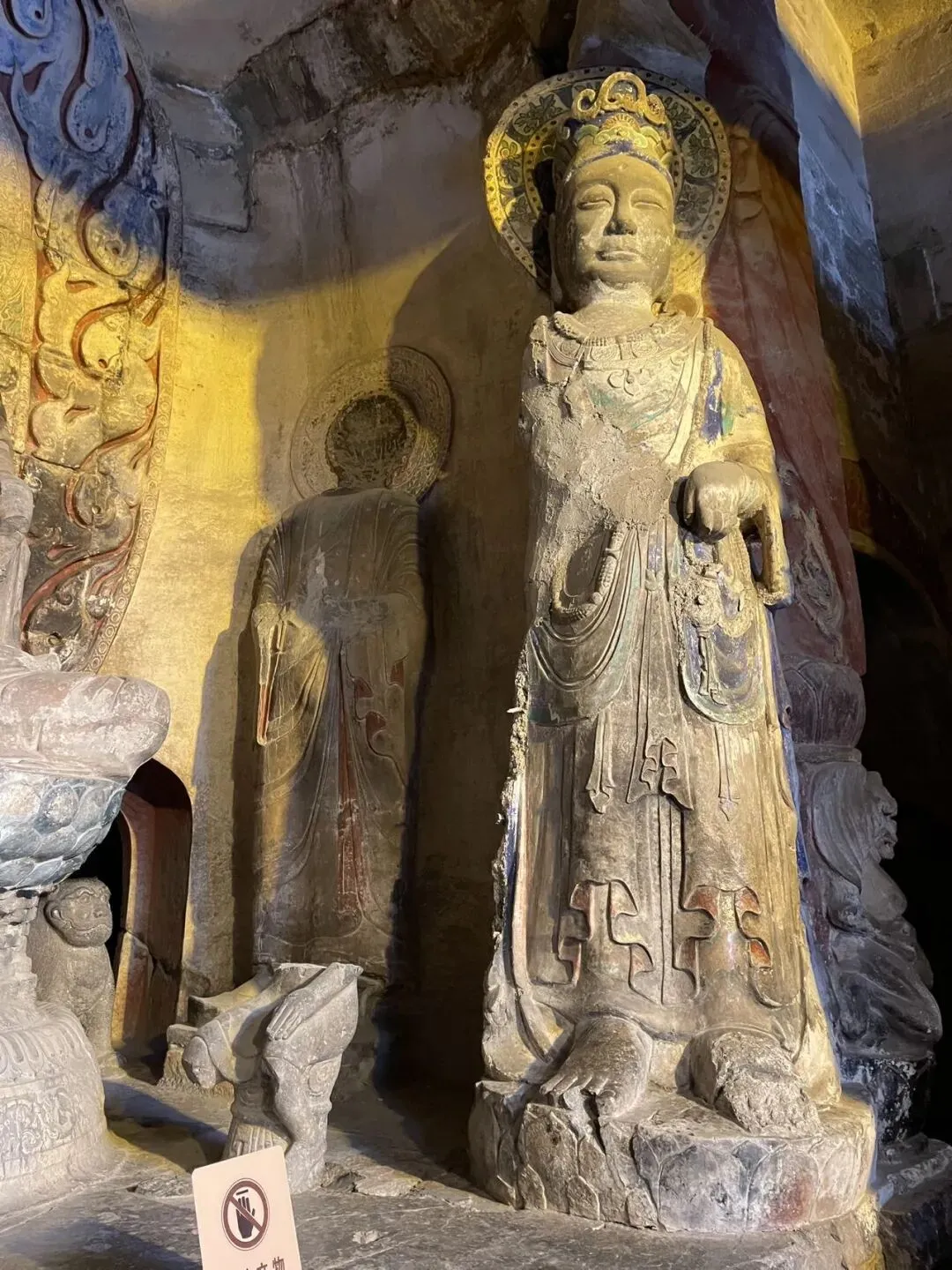还没进门就被彩绘吸引了。还有两位弟子藏在菩萨身后,紧贴墙壁。从门口完全看不到。