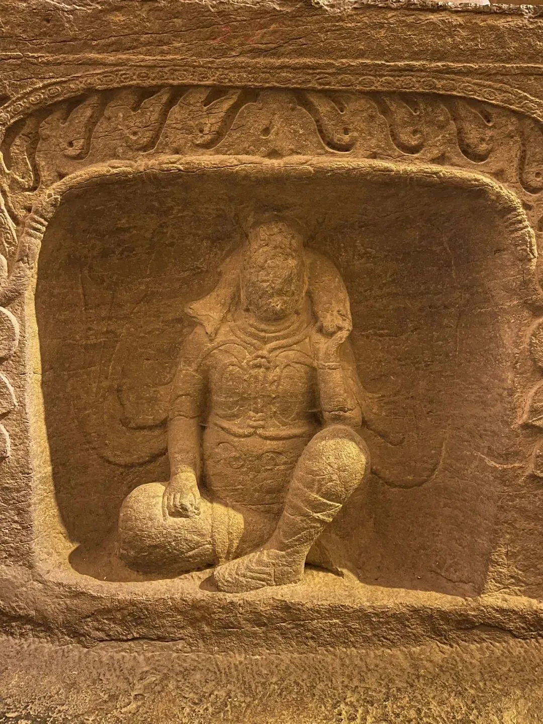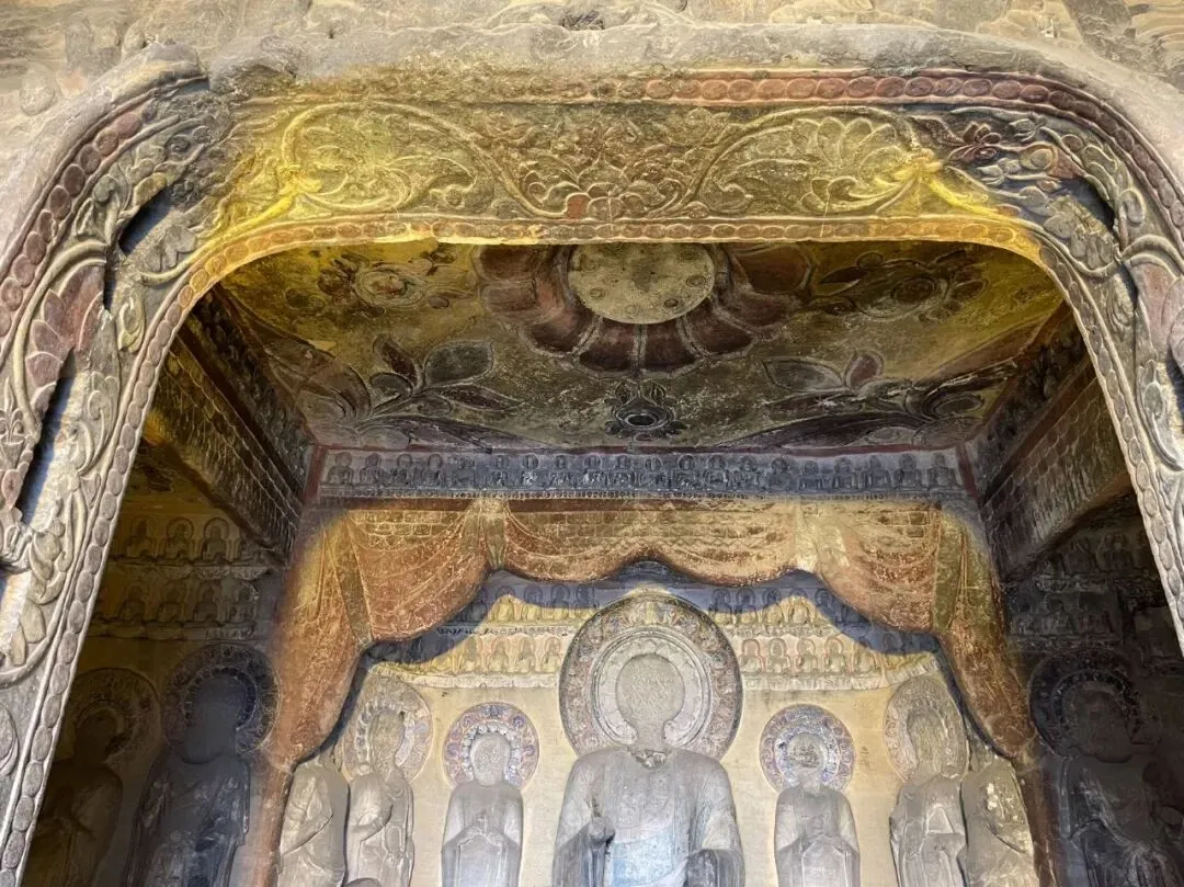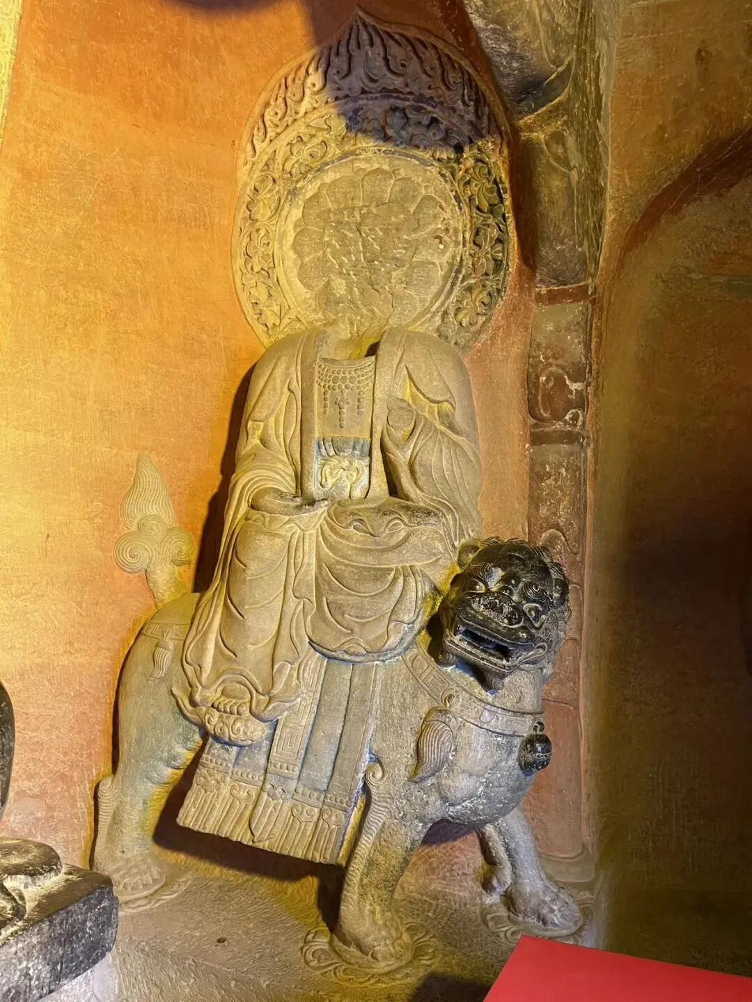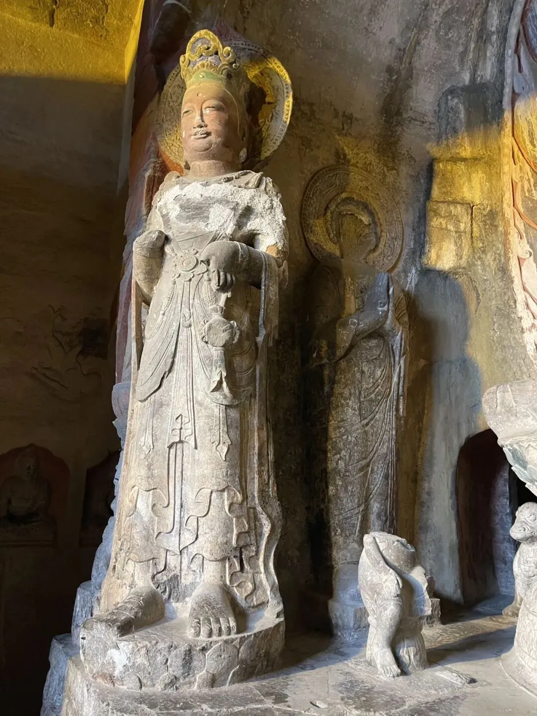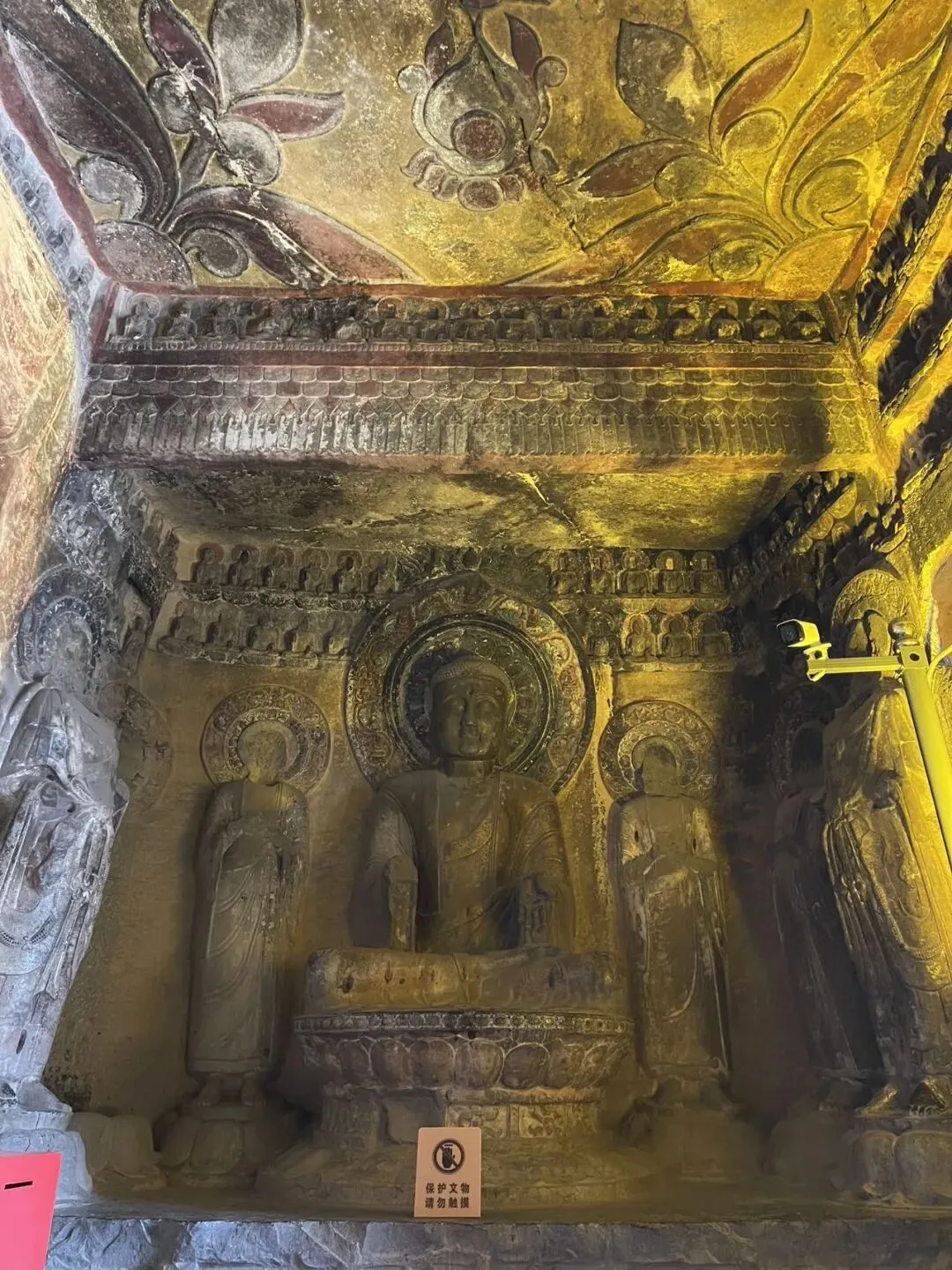 还没进门就被彩绘吸引了。还有两位弟子藏在菩萨身后,紧贴墙壁。从门口完全看不到。