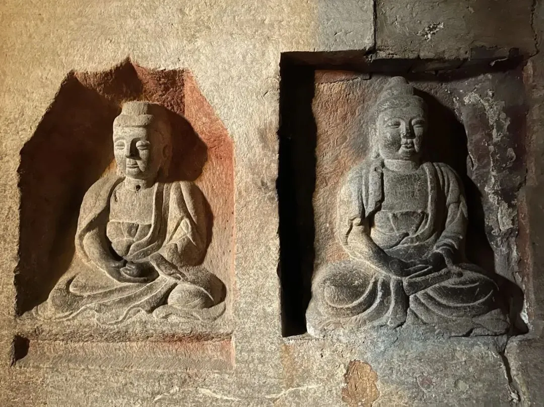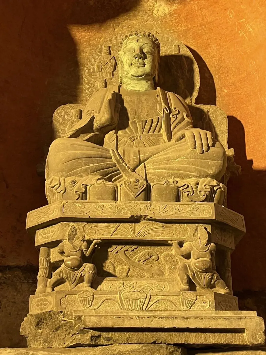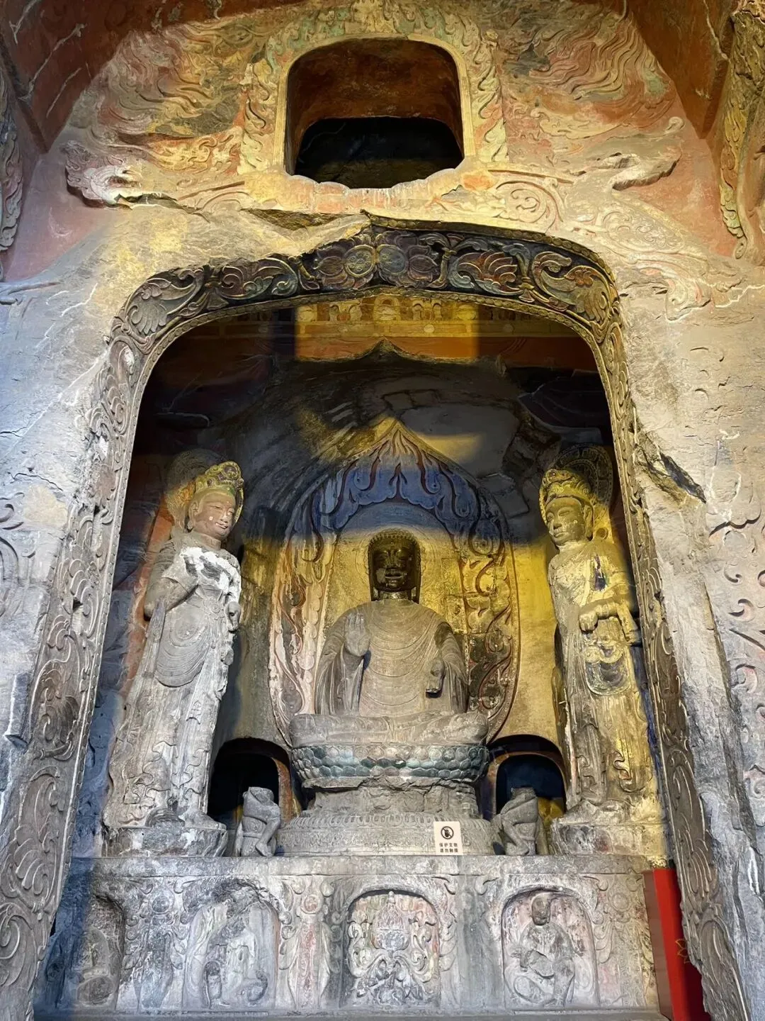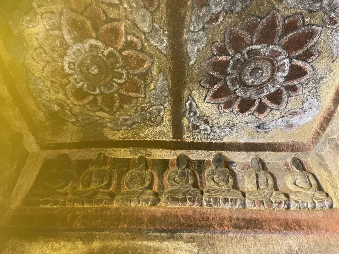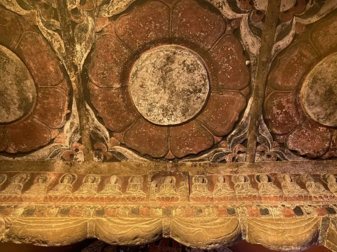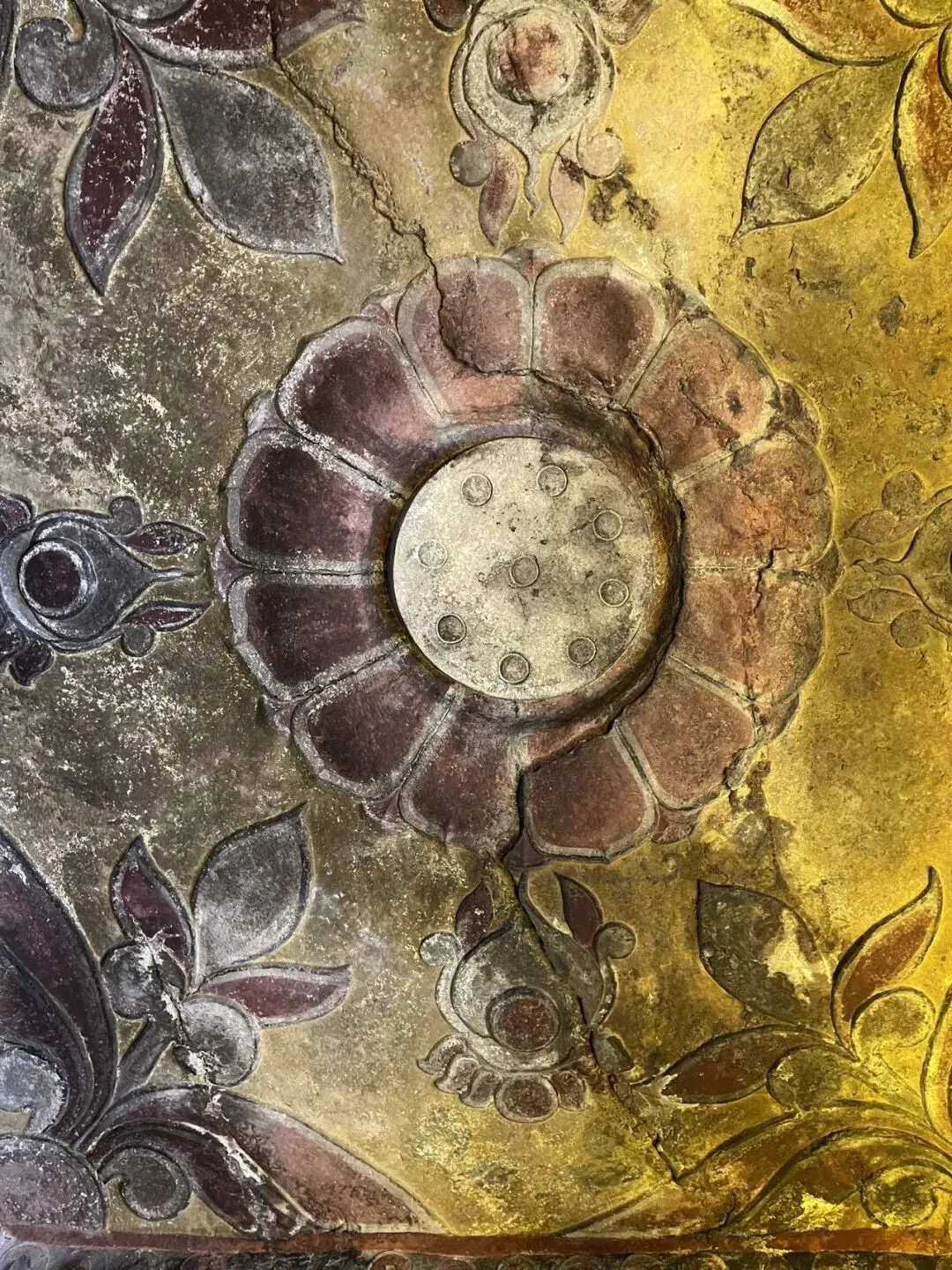 还没进门就被彩绘吸引了。还有两位弟子藏在菩萨身后,紧贴墙壁。从门口完全看不到。