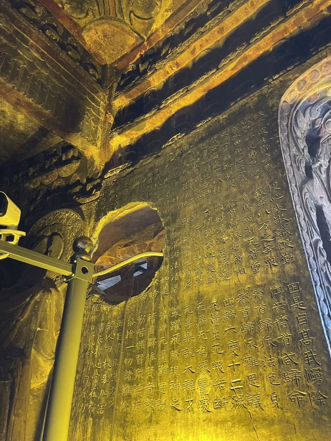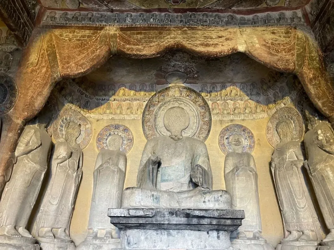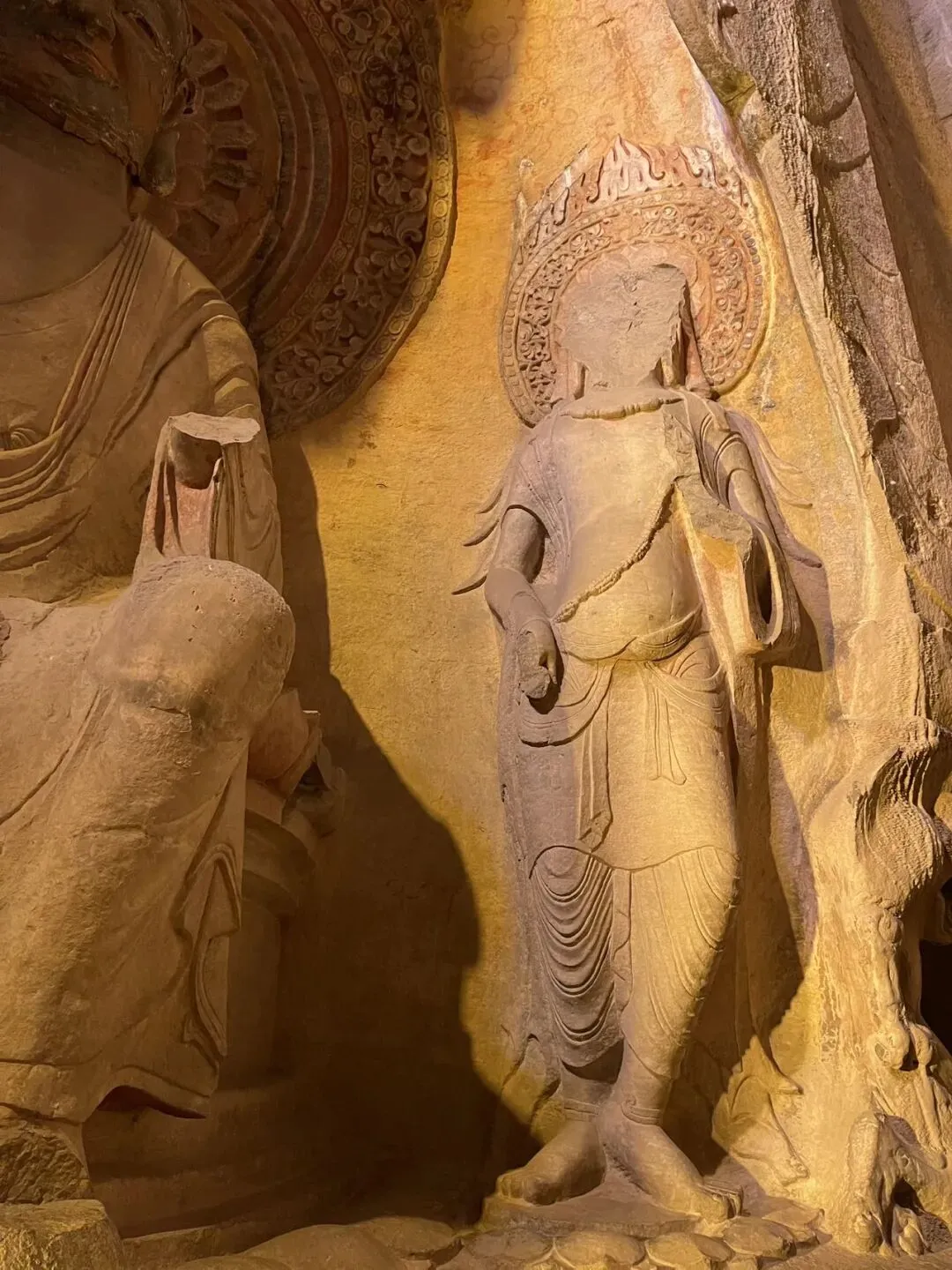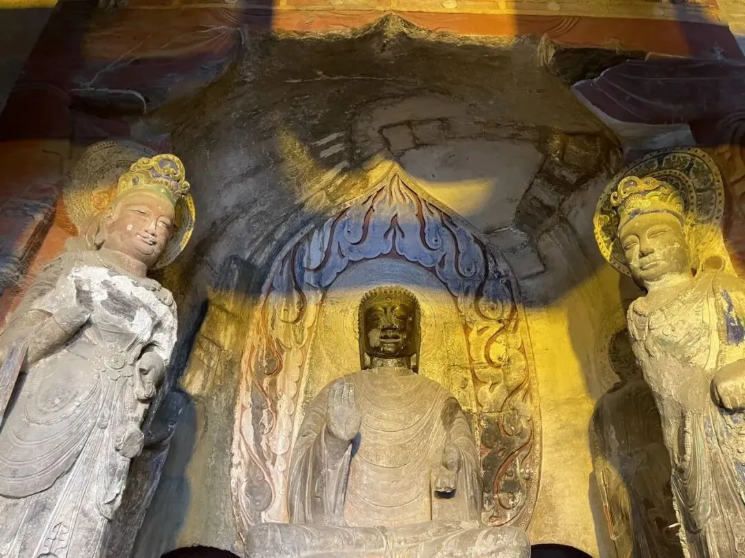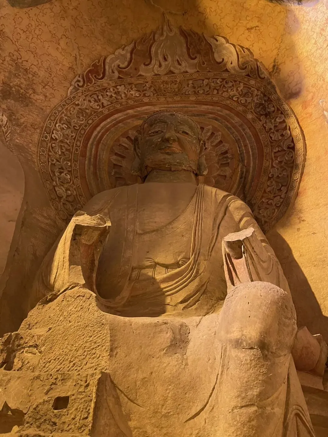 还没进门就被彩绘吸引了。还有两位弟子藏在菩萨身后,紧贴墙壁。从门口完全看不到。