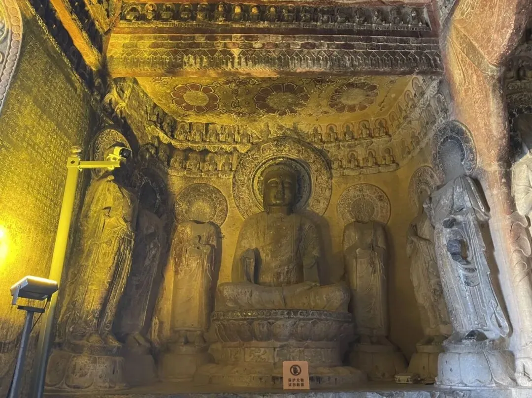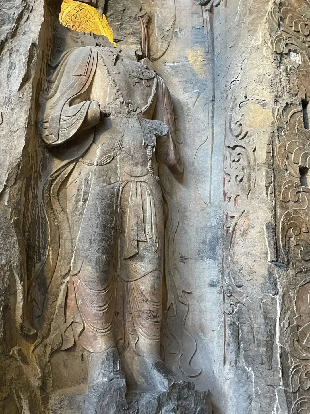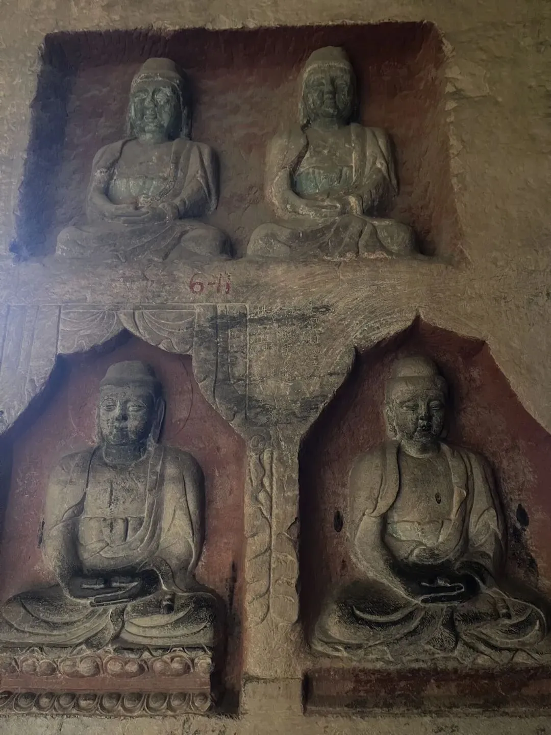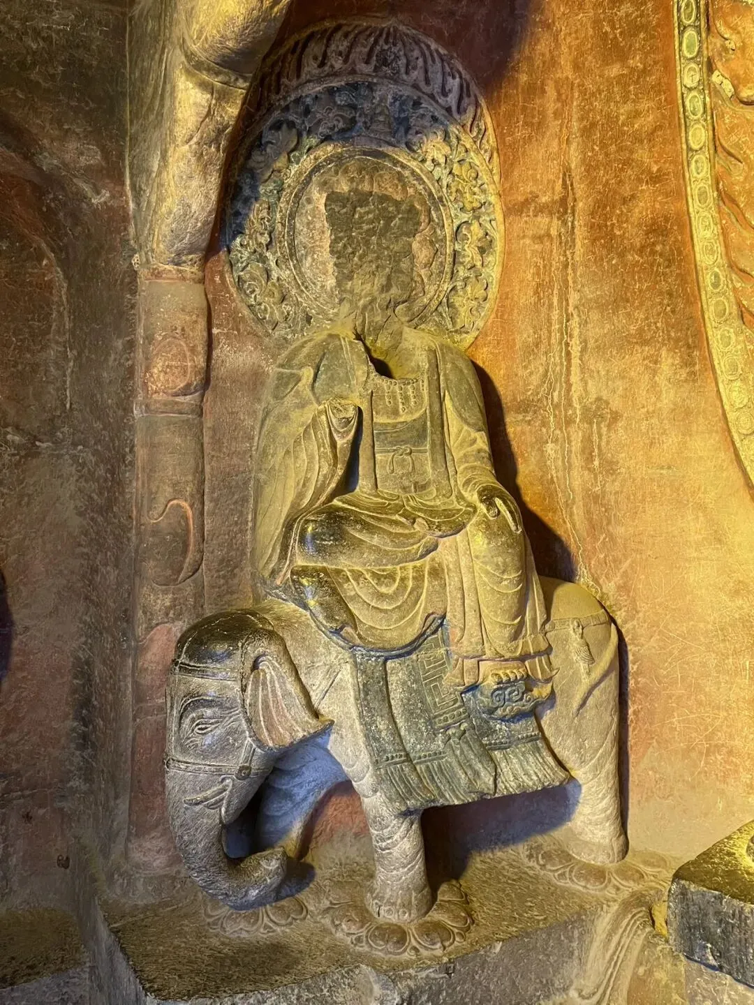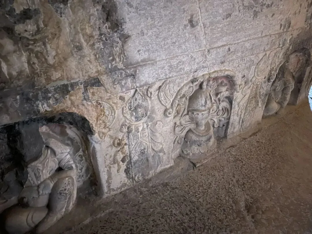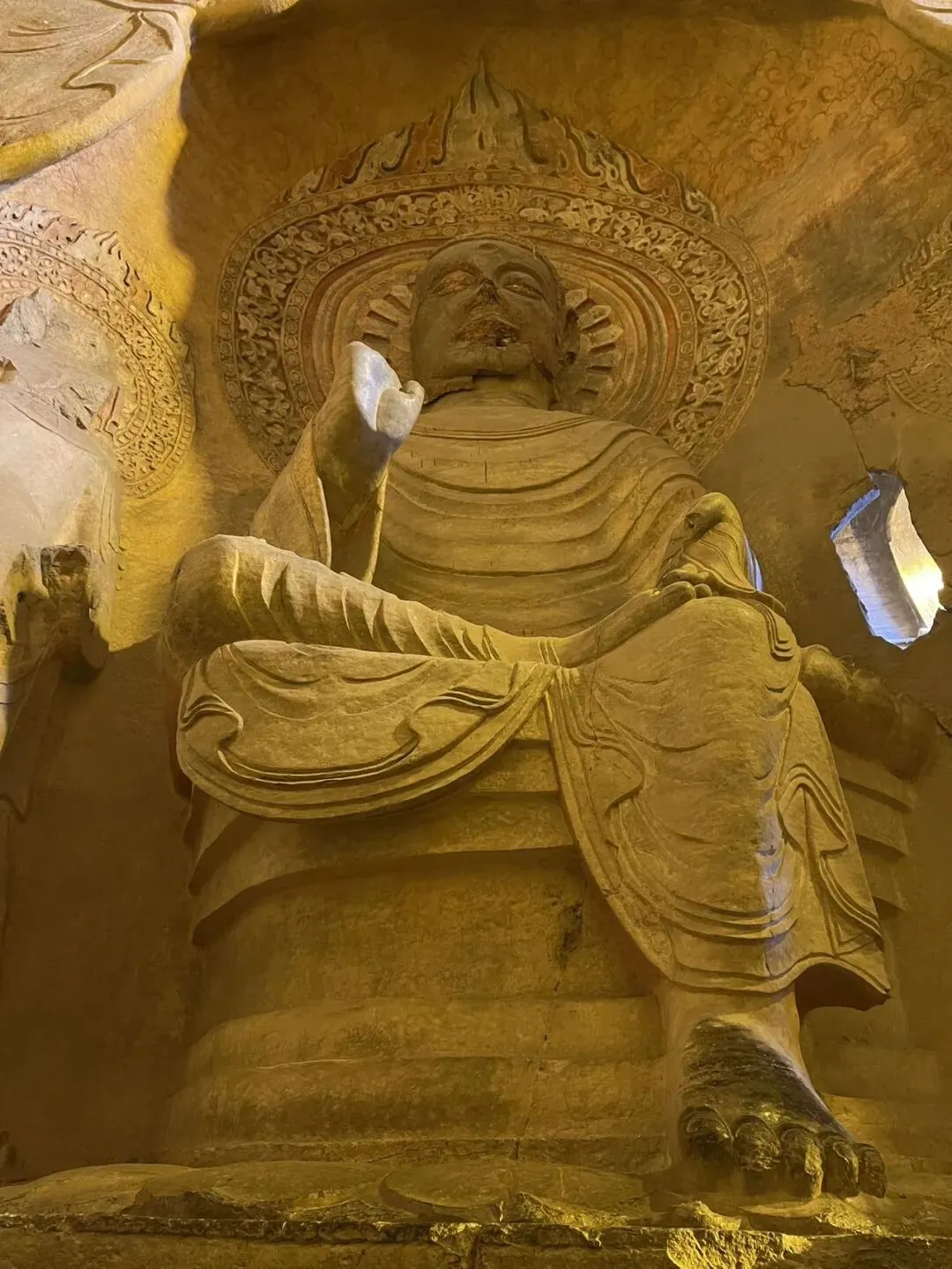 还没进门就被彩绘吸引了。还有两位弟子藏在菩萨身后,紧贴墙壁。从门口完全看不到。