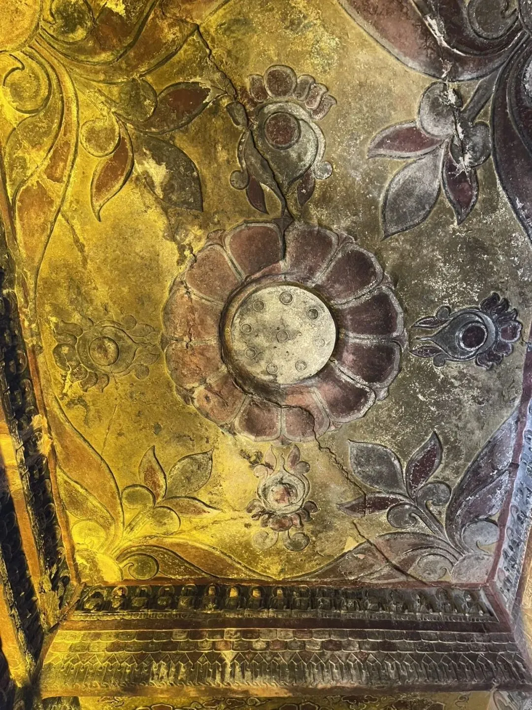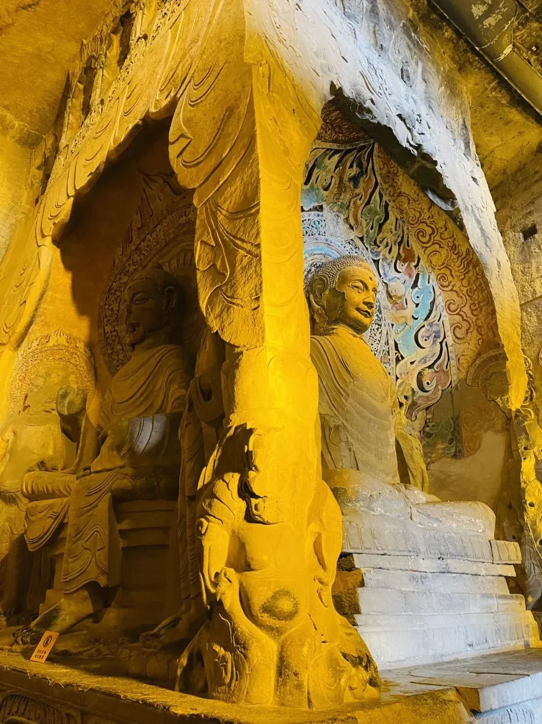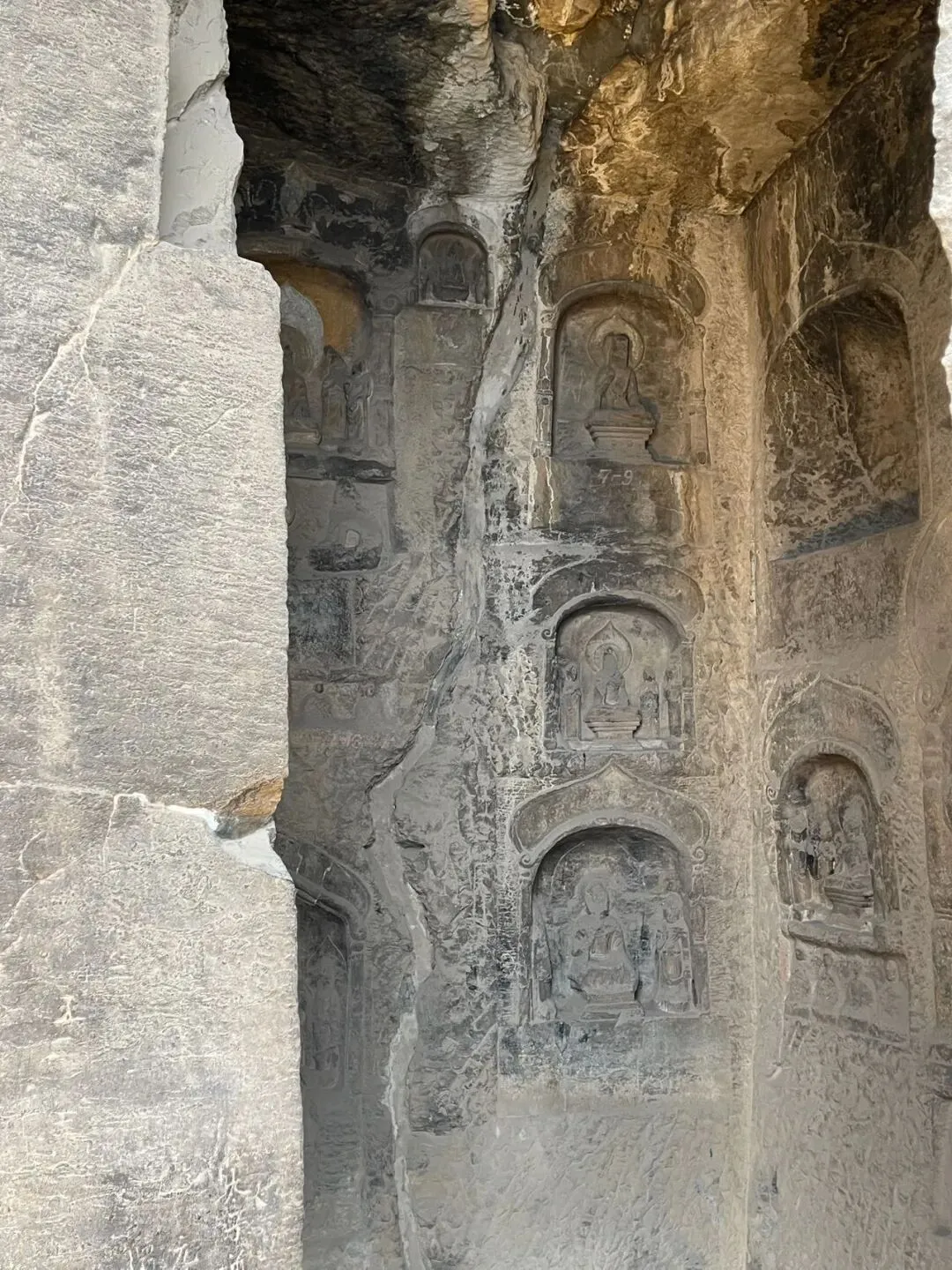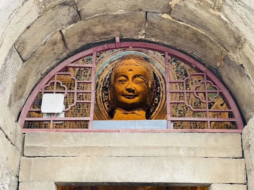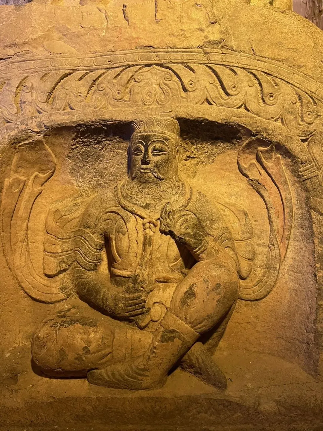 还没进门就被彩绘吸引了。还有两位弟子藏在菩萨身后,紧贴墙壁。从门口完全看不到。