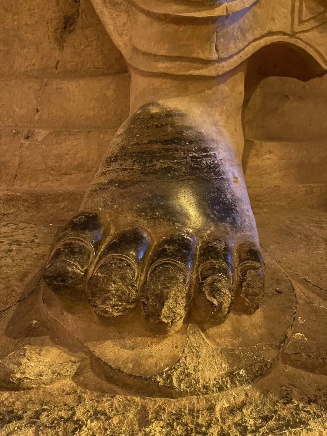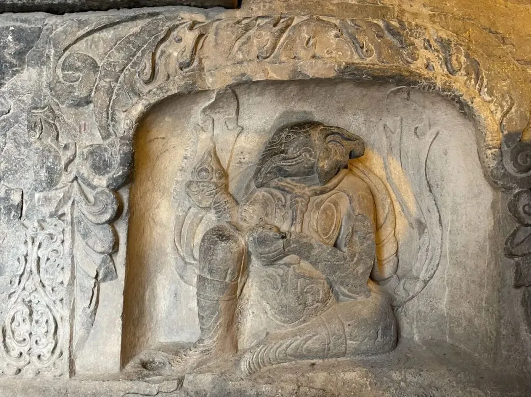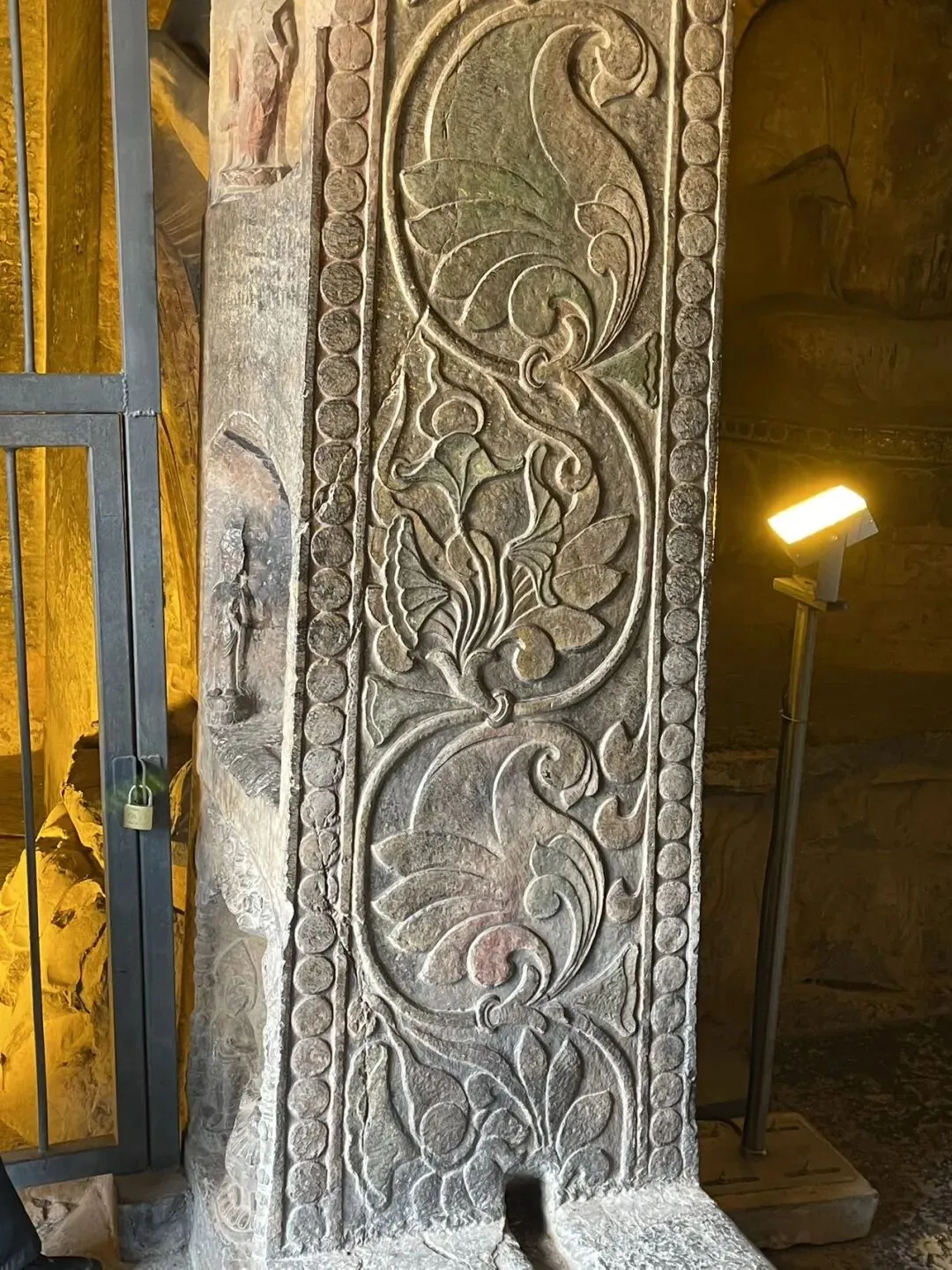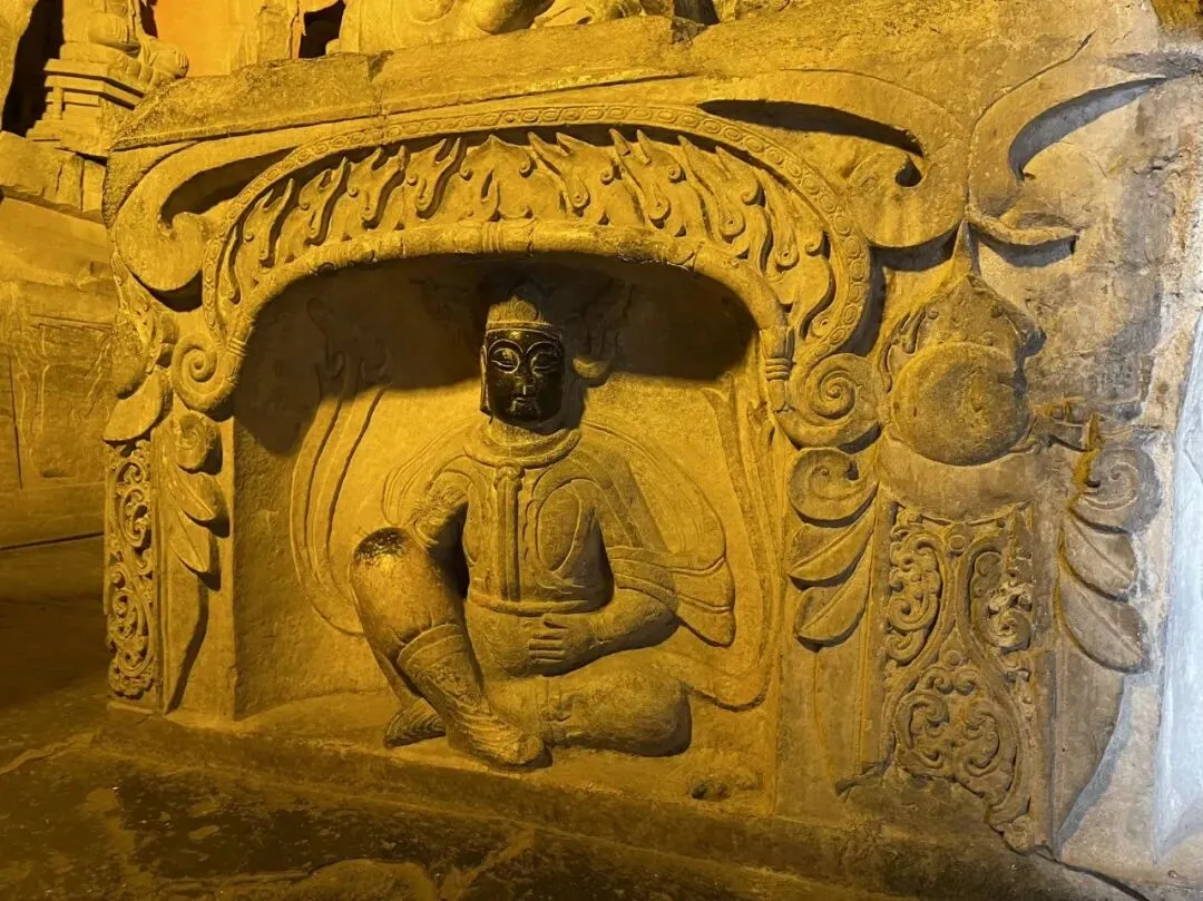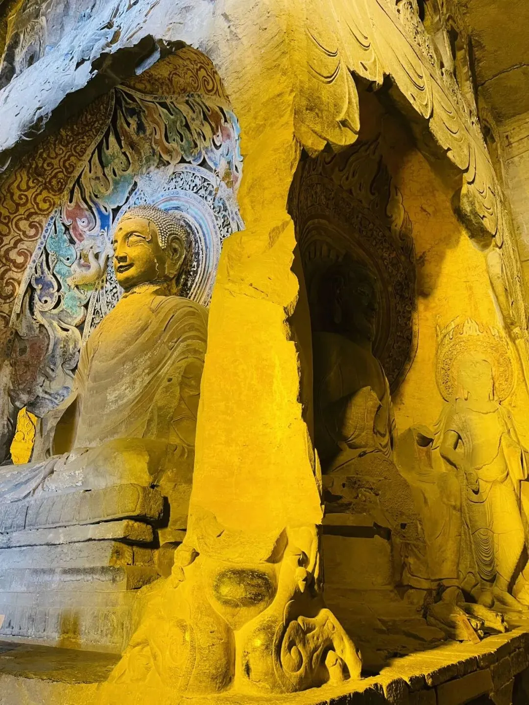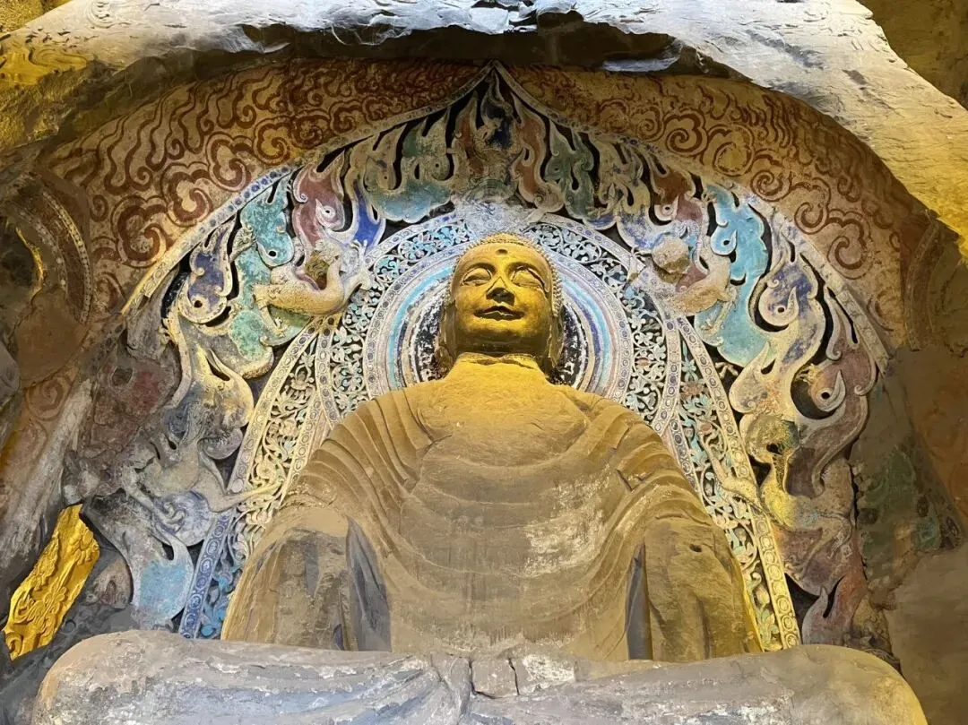 还没进门就被彩绘吸引了。还有两位弟子藏在菩萨身后,紧贴墙壁。从门口完全看不到。