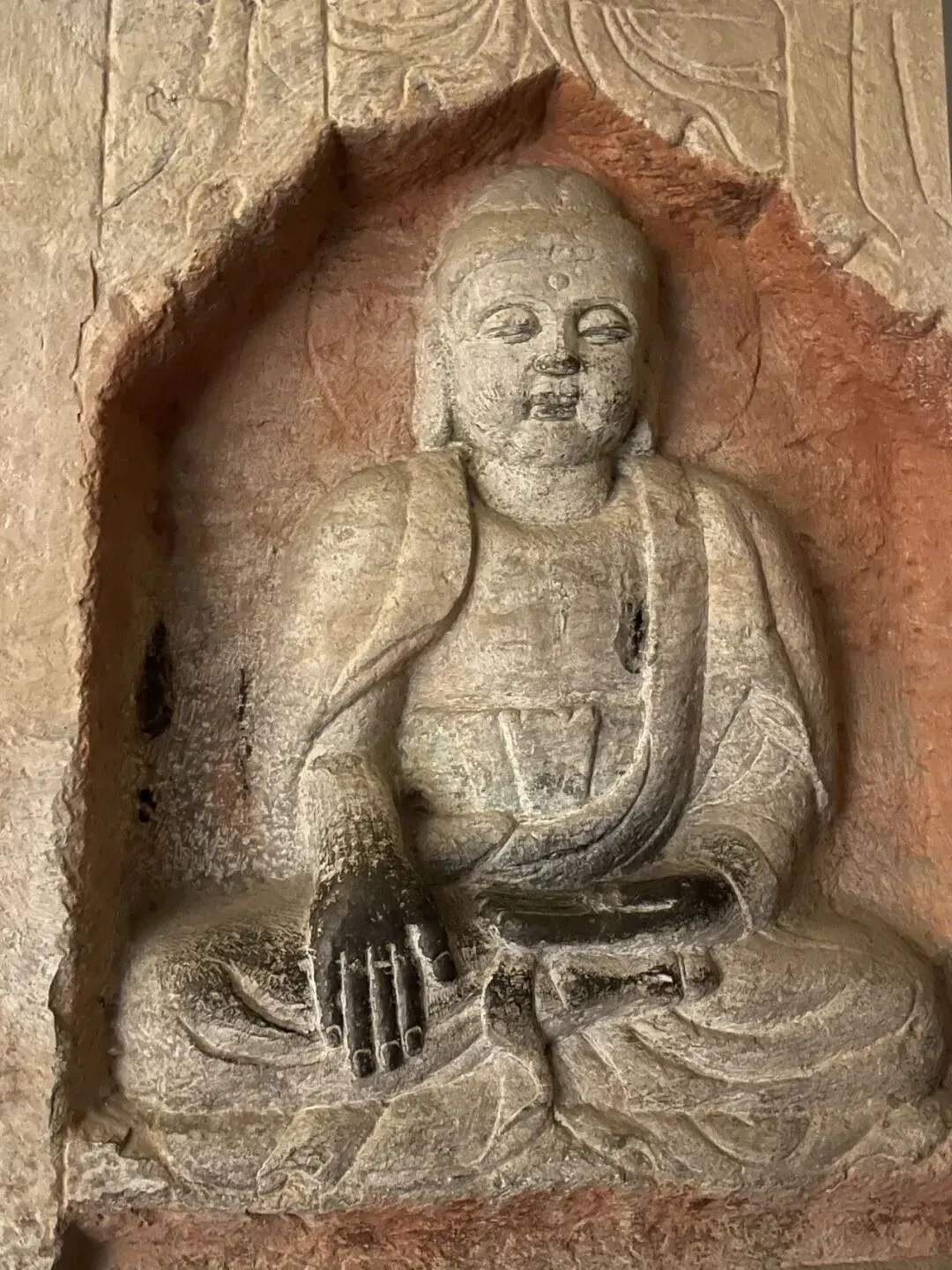 顶部下沿的小佛全须全尾儿,面容精致慈悲