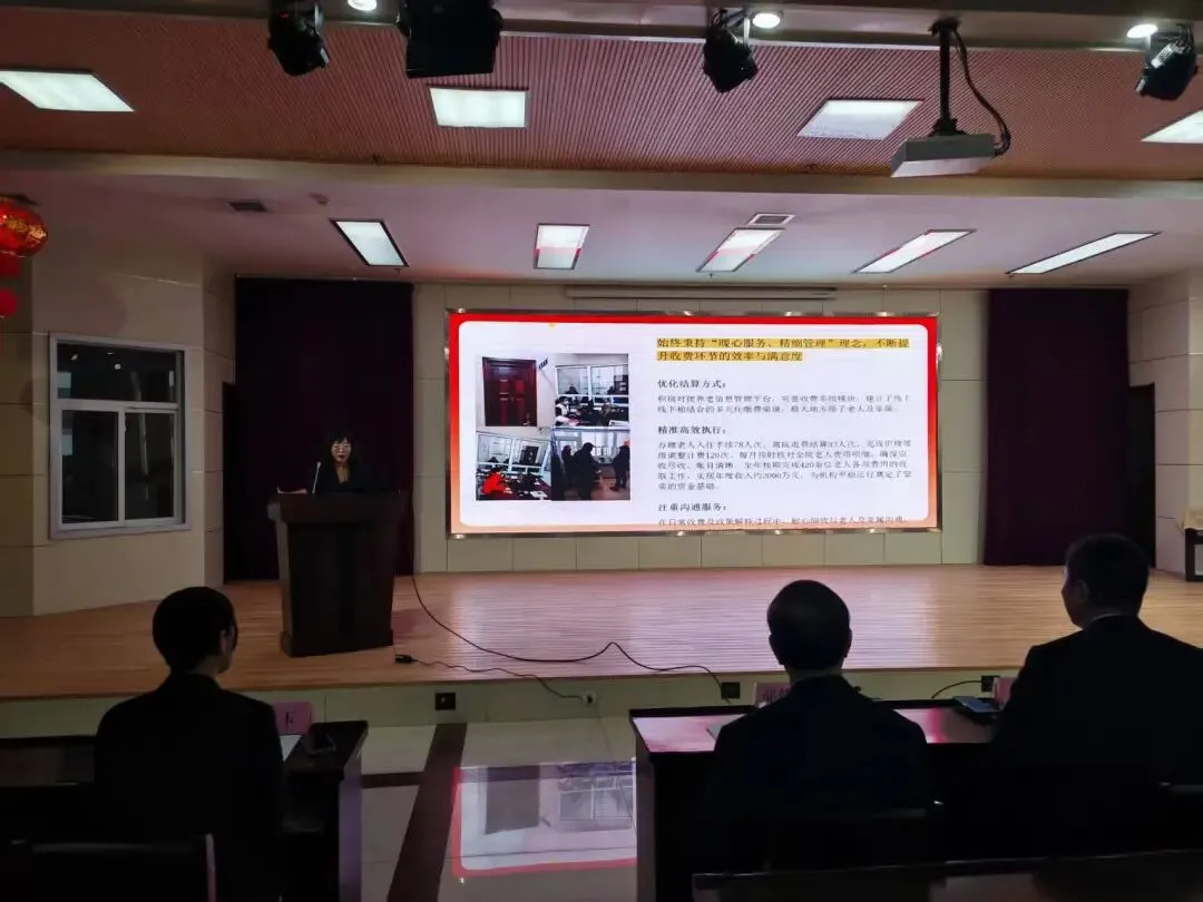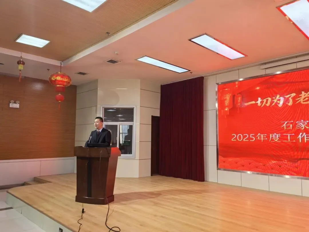 养老院王朝院长首先代表领导班子总结了2025年养护院整体工作和所取得的成绩,同时明确了2026年的重点工作目标任务,最后以真挚的情感向我院住养长辈及其亲属、全体职工致以节日的祝福和衷心的感谢。