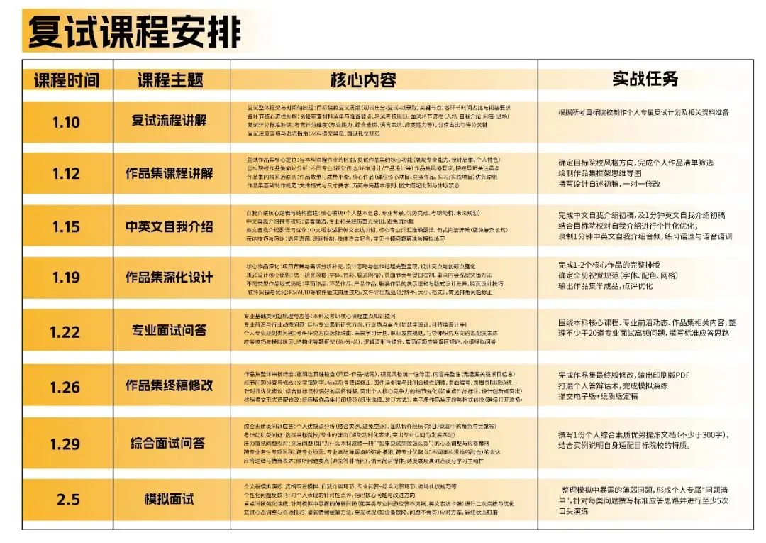 以上课程安排为年前线上复试课程,复试手绘为年后线下课程,年后复试线下课程时间为3.5--3.20