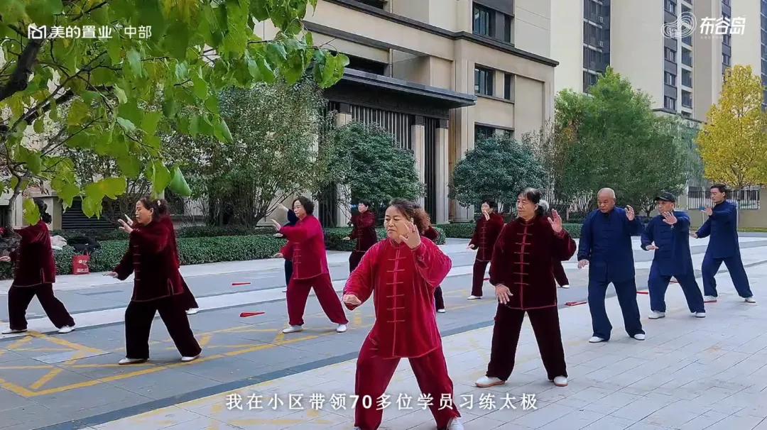 邯郸美的锦观城的业主刘子安,是太极社群的主理人,已练习太极40多年,两年多的时间,刘子安传授太极刀、剑、拳、扇等八套功夫,学员从十几人扩展到七十余人,“第一天就来了十几位邻居,每天这样练一练,健康改善了,邻里也熟悉了。”