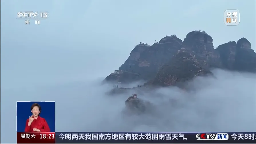 2月1日,受到冷空气的影响,河北邯郸武安市古武当山景区也出现了壮美的云海雾凇景观。