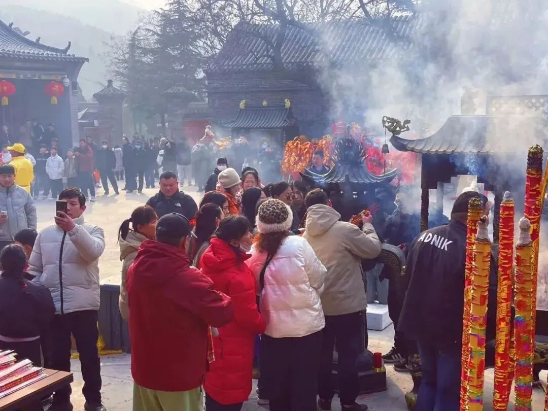 财神殿前,香客如织、水泄不通。扭秧歌、吹唢呐、跑竹马的表演队伍活力满满,动作行云流水,引得现场掌声雷动,喝彩声此起彼伏。石窟区的游客更是比肩接踵。大家仰望着精美的佛像,惊叹声、讨论声不绝于耳,都被这千年文化的魅力深深吸引。