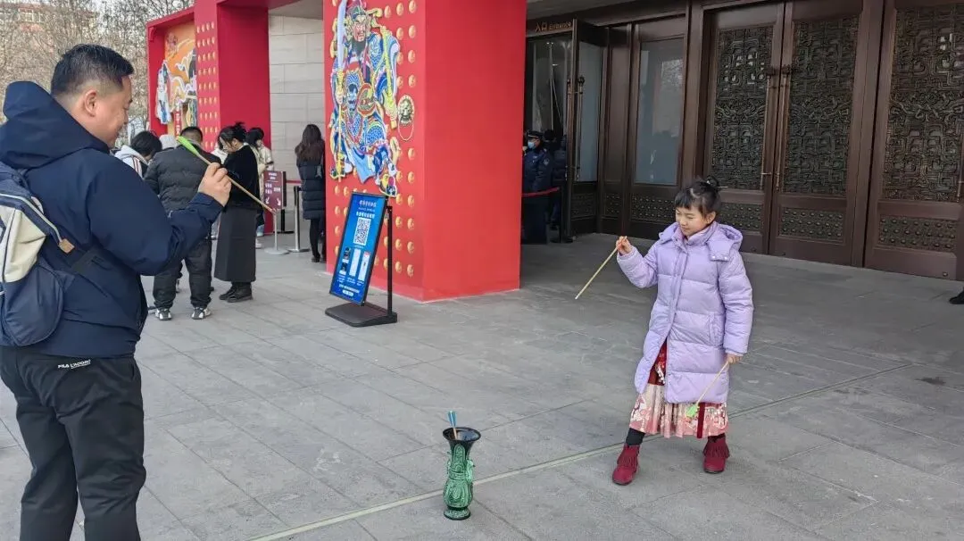 投壶雅趣挑战——男女老少争相体验传统投壶技艺,精准命中的欢呼声此起彼伏。博物馆特别为表现优异者送上新春主题礼品,让游客在竞技中感受礼仪文化的魅力。