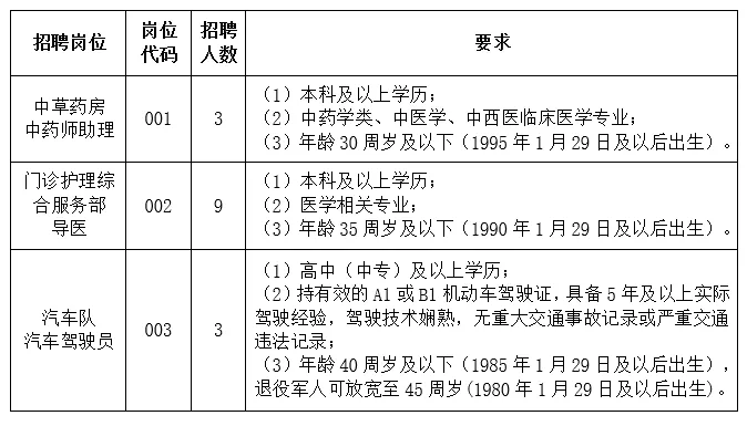 (二)招聘岗位及具体条件