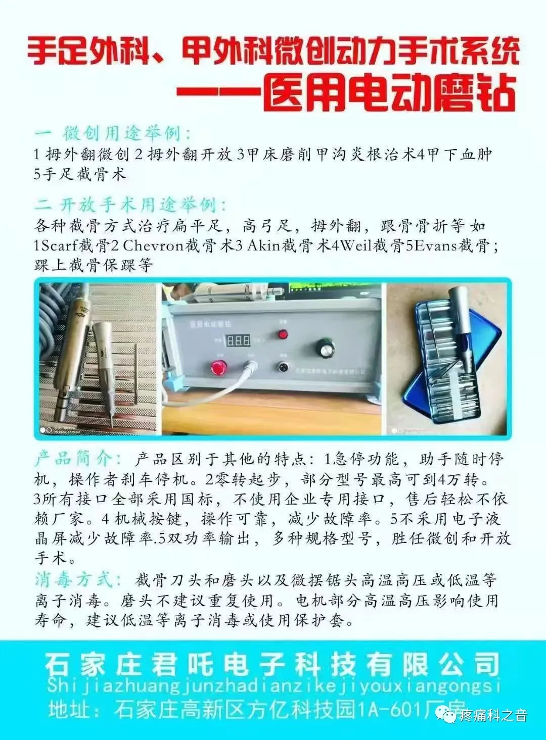石家庄君吒微创拇外翻专用医用电动锯钻(磨骨钻),三证齐全,可提供正规发票,支持全国货到付款。厂家针对基层医疗机构提供全方位技术帮扶与支持。