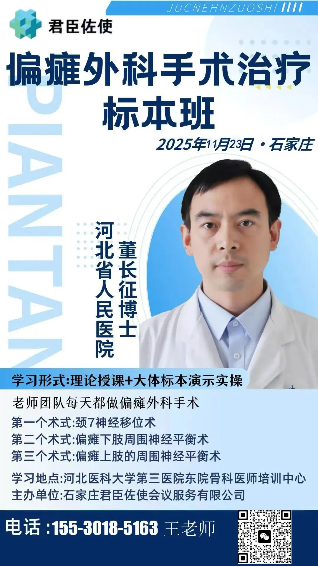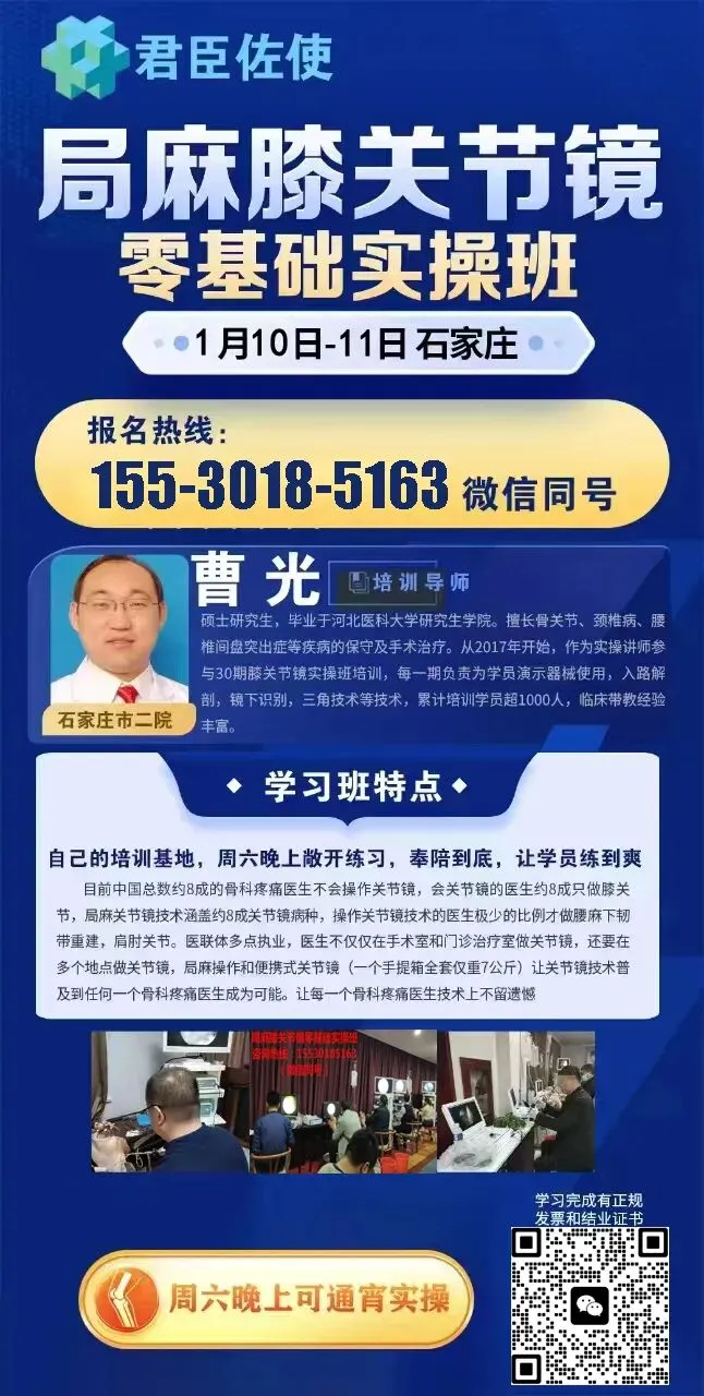 在骨科微创技术快速发展的背景下,君臣佐使骨科会议服务公司连续推出一系列骨科疼痛科微创学习班,学习班侧重学员亲自动手操作的机会。接下来还会推出更多的骨科微创技术培训班。