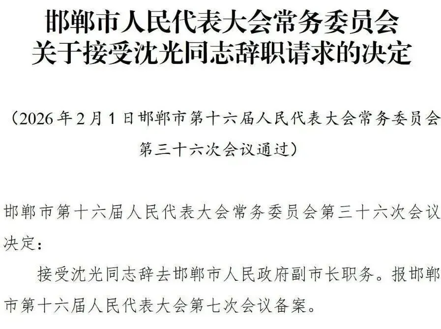 邯郸市人民代表大会常务委员会关于接受沈光同志辞职请求的决定
