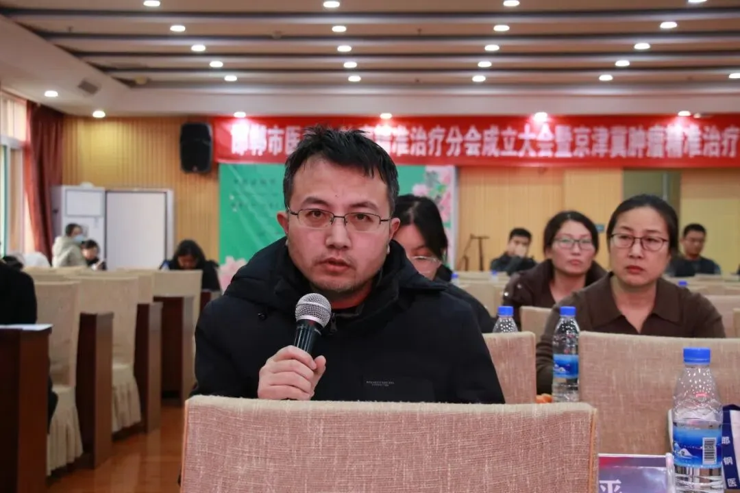邯郸市医学会周海平会长发表致辞,他对分会的成立表示祝贺,他强调,肿瘤精准治疗是医学发展的必然趋势,分会的成立搭建了一个良好的学术交流与合作平台,希望分会充分发挥桥梁纽带作用,凝聚区域肿瘤诊疗力量,加强学术研讨、技术推广和人才培养,推动邯郸市肿瘤精准治疗水平与京津冀地区同频共振,助力健康邯郸建设。