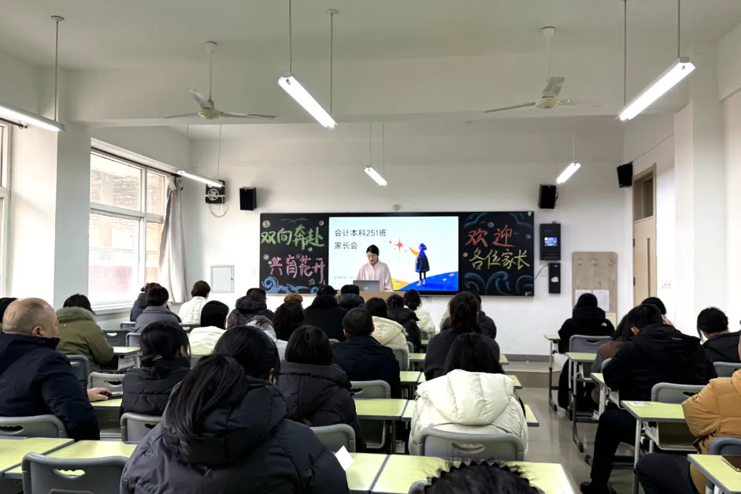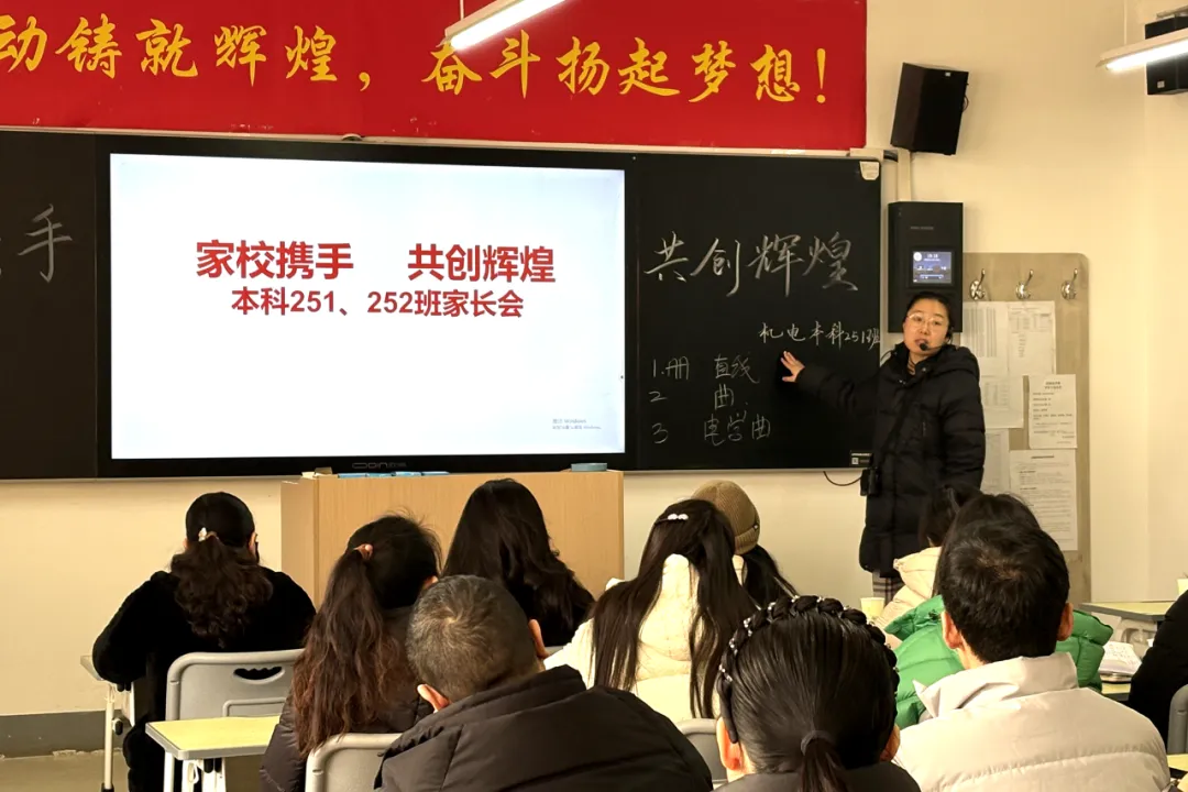 上午9:30,家长会在各班教室启幕。家长们怀揣着对孩子成长的关切与期待走进校园,沉浸式了解中本贯通班教学特色与育人理念。班主任以详实数据复盘了本学期教学成绩,细致分析每名学生的成长亮点与待改进之处,针对中本贯通培养模式的衔接要求,重点解读后续学业规划及转段考核要点,让家长清晰掌握“中职筑基、本科进阶”的培养路径。