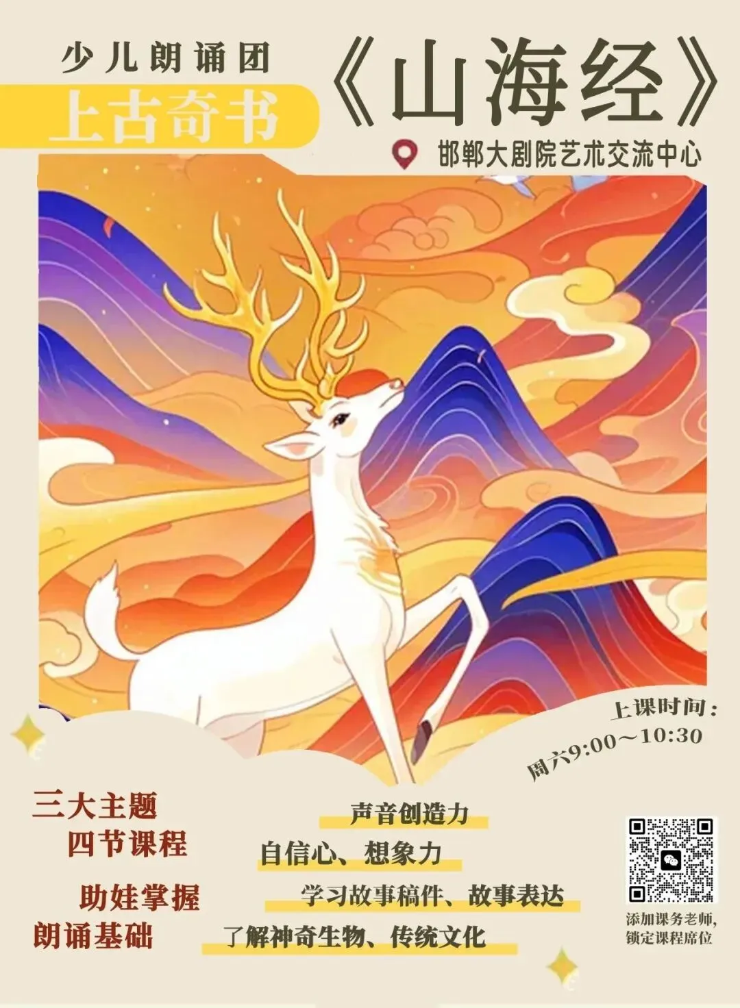 邯郸大剧院少儿朗诵团为你准备了三大主题课:上古神话、非遗节气、名画故事,任你挑选!