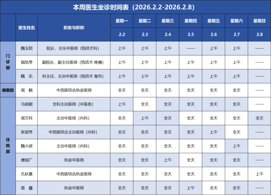 【出诊信息】石家庄真仁中医钩活术总医院(2026.2.2-2026.2.8)