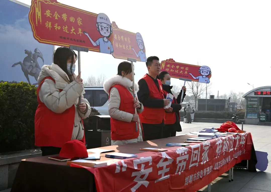 为切实筑牢春运安全防线,广泛普及应急安全常识,2月2日,在春运正式开启之际,邯郸市应急管理局、市交通运输局与丛台区、经济技术开发区应急管理局共同在高铁站站前广场开展“安全带回家 祥和过大年”志愿服务活动,将安全知识、暖心关怀打包成“专属年货”,用一抹志愿红,为万千游子的归乡旅途筑牢安全防线。