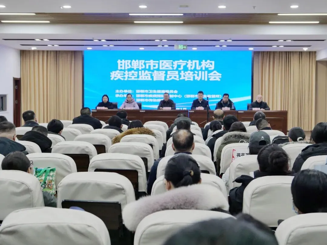 为扎实推进医疗机构疾控监督员制度试点工作,近日,邯郸市卫生健康委召开全市医疗机构疾控监督员制度试点工作培训会。市卫生健康委副主任张玉成,市疾控中心(市卫生监督所)主任刘煜,市传染病医院院长党殿杰等参加会议。各试点县(市、区)卫生健康局主管领导、业务股室负责人、专职疾控监督员以及部分试点医疗机构分管领导、业务科室负责人等参加培训。