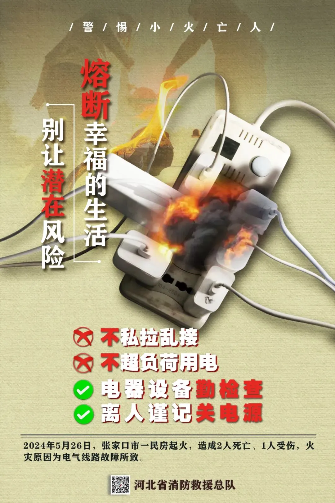 2.教育儿童不玩火,不要独自尝试动火做饭、触动电气设备,家长妥善存放家中打火机等火种。