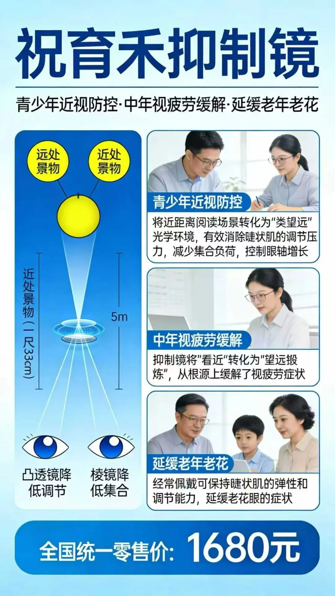 孩子近视了一元免费体验7天祝育禾抑制镜,没有效果把眼镜拿回来就行,一元也退回!家长们,孩子近视了到哪你都得先花钱买眼镜。我们祝育禾抑制镜可以前期预防,近视了可以降低度数还能抑制近视增长。一元体验7天,有效果了再付钱。