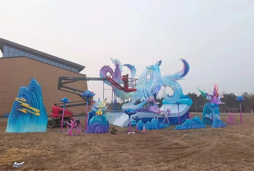 首届襄湖新春灯会布置现场。(受访单位供图)