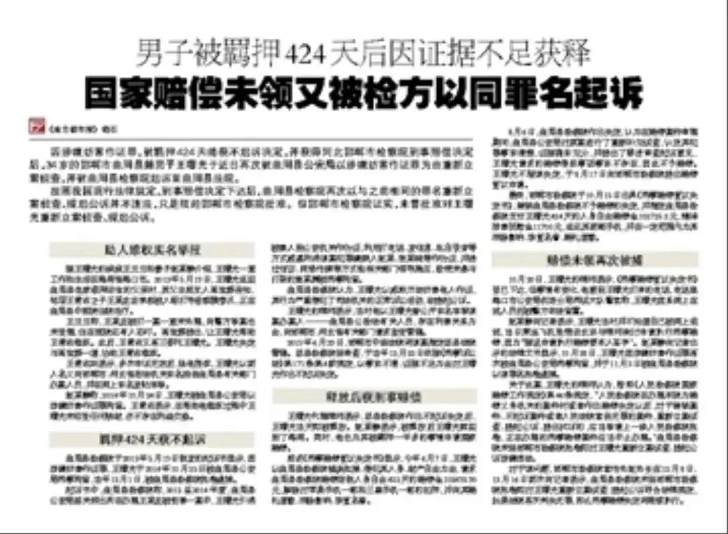 1、2013年5月19日在河北省邯郸市曲周县实验中学校园内,初一年级的13岁学生王岩龙,遭到同年级同学伙同高三年级学生十来人采用凌辱、殴打等暴力手段实施校园霸凌(后被迫辍学),被寻衅滋事达到【轻伤程度】的恶性案件,公安机关不受案和数年未结案。王曙光帮助遭校园霸凌13岁孩子维权被羁押,曲周县公、检、法“认定有罪”,法院、检察院均指定管辖后,邱县检察院经退侦补查、自侦调查认定无罪并获国家赔偿11.4万元(系邯郸市检察院撤销曲周县检察院不予赔偿决定后作出的支持赔偿决定)。