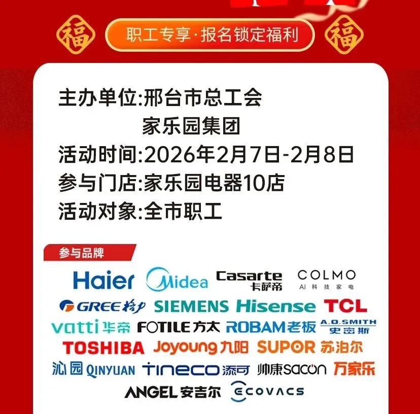 2.7-2.8日!邢台市总工会携手家乐园电器,政企联动,专场福利!