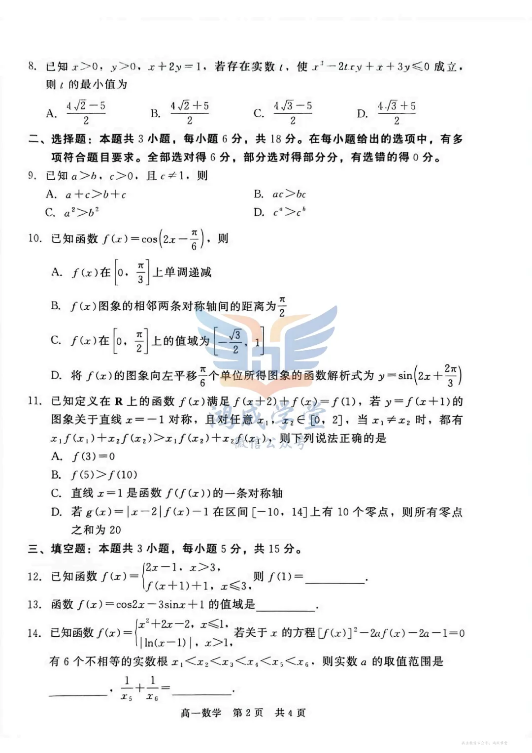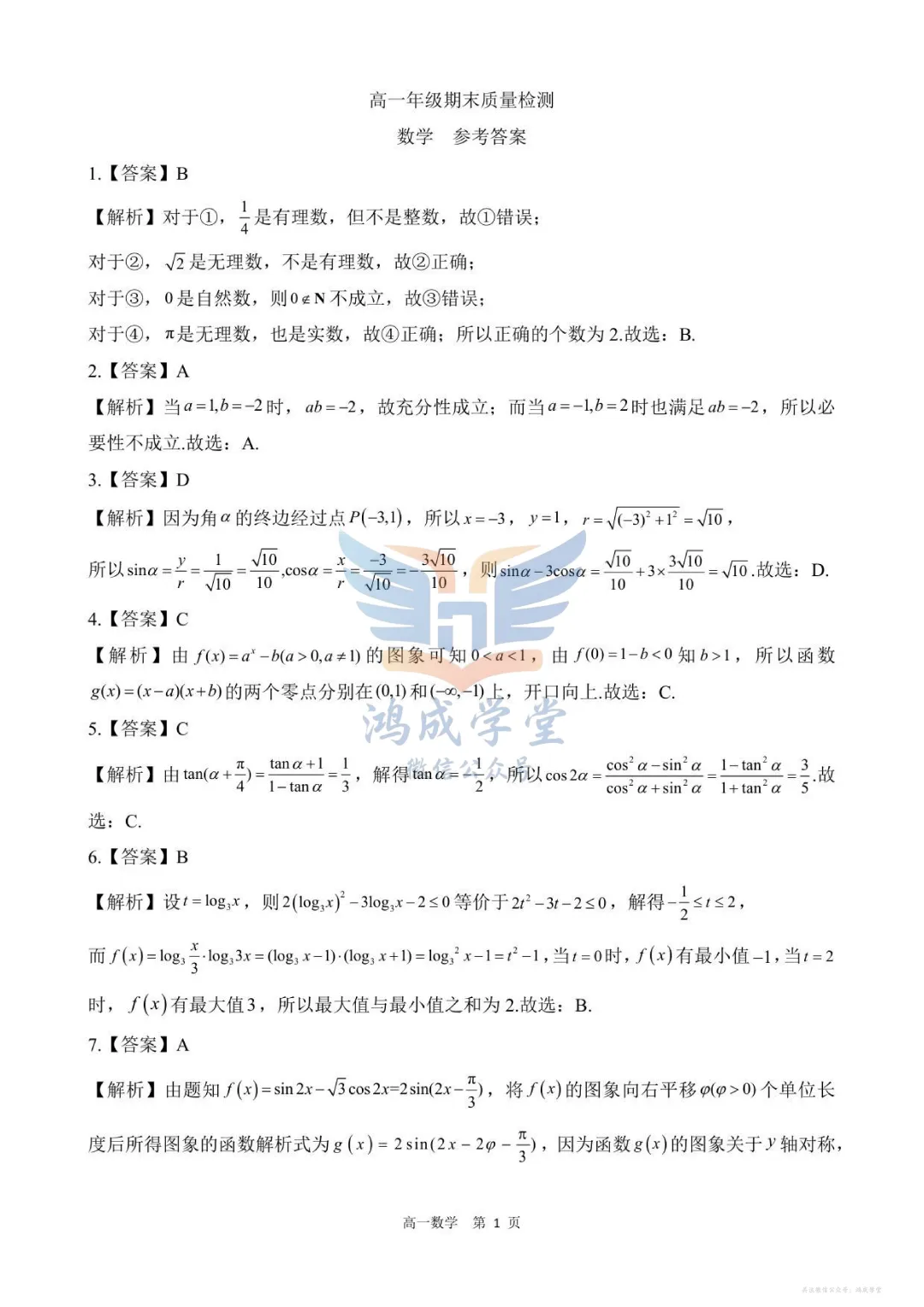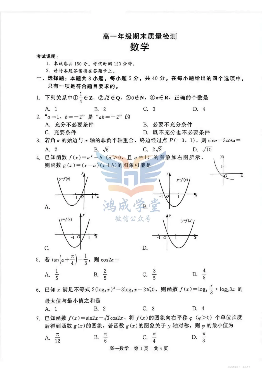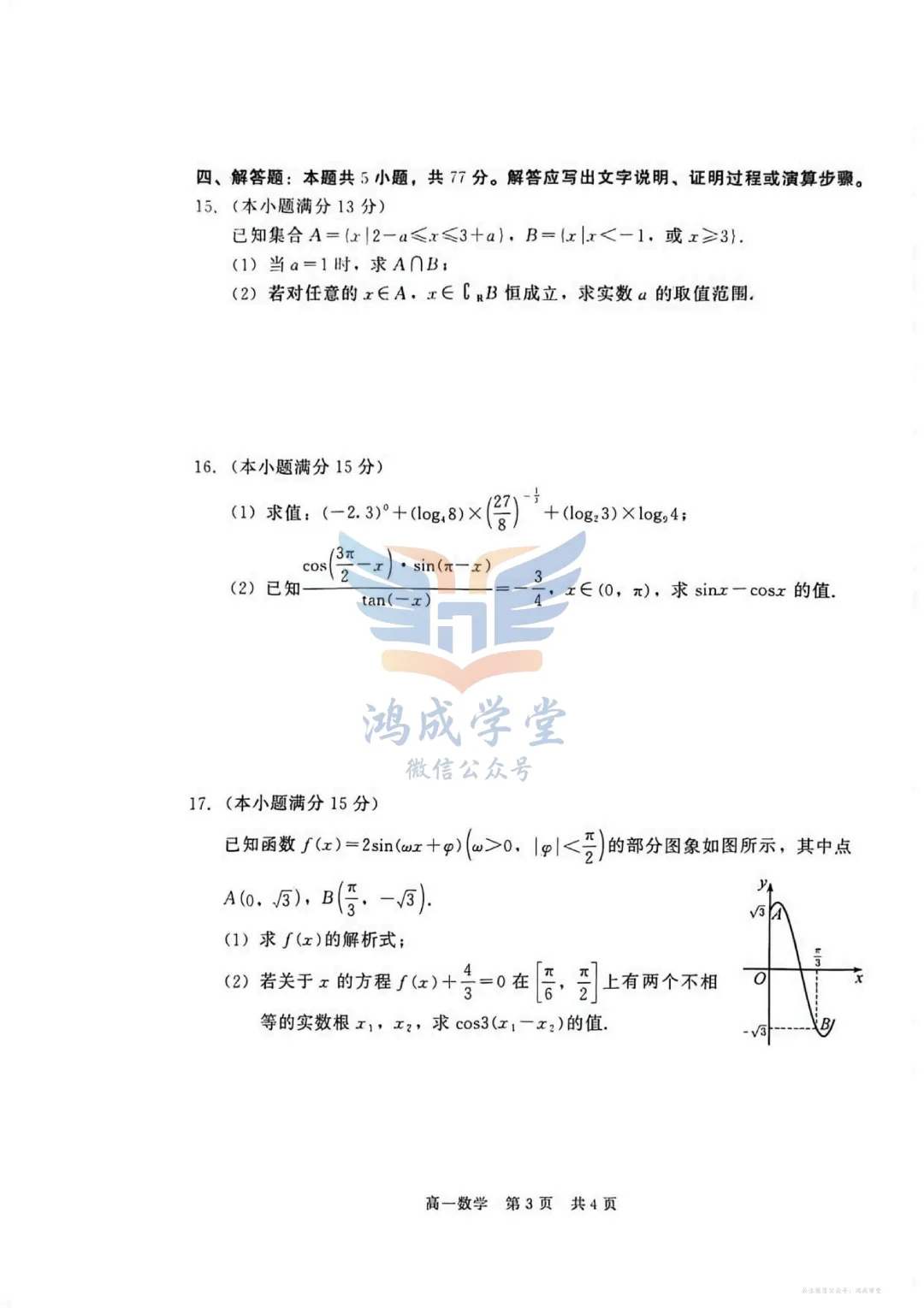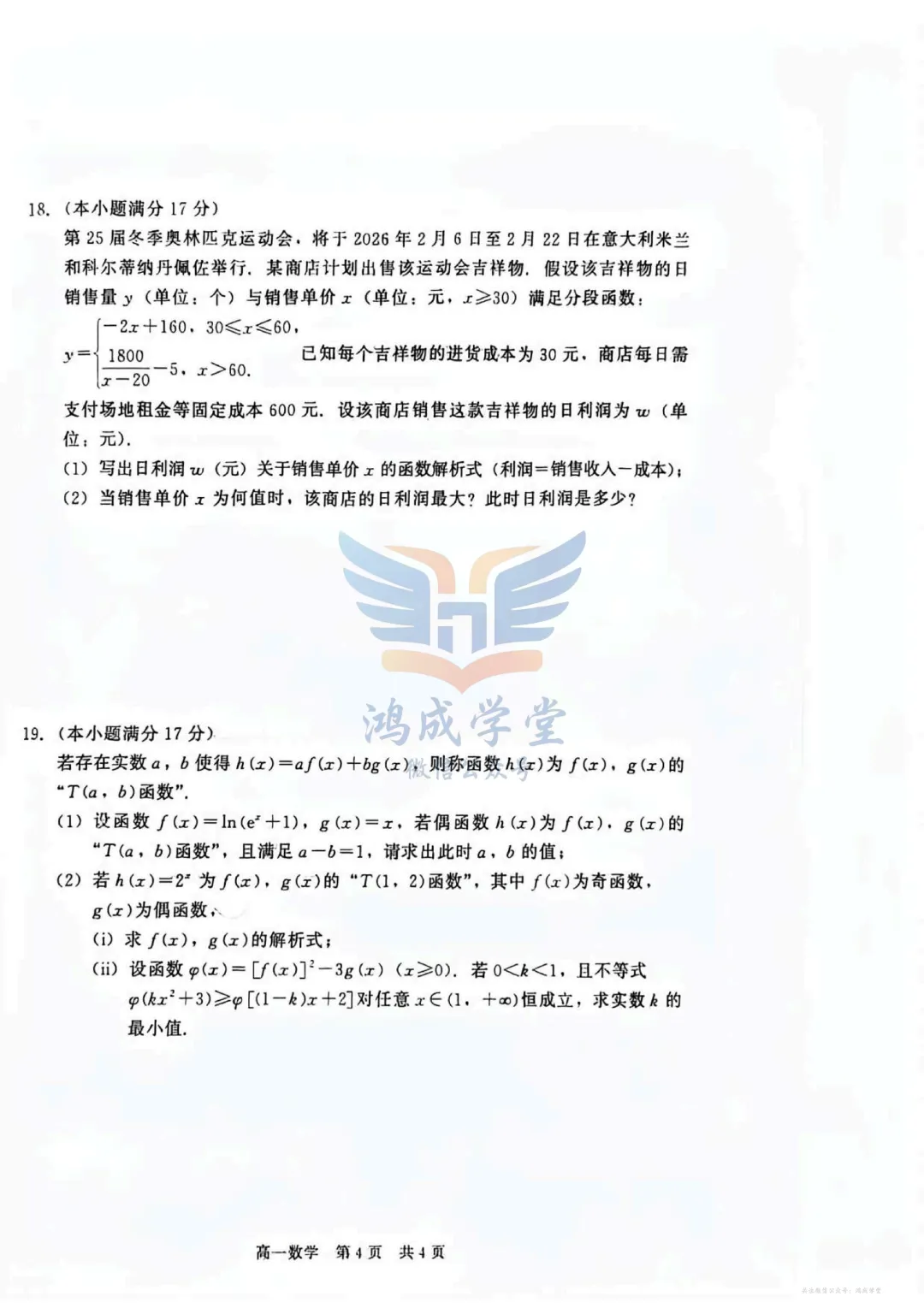 河北省邯郸市魏县NT20考试2025-2026学年高一上学期1月月考数学试题(图片版,含答案)
