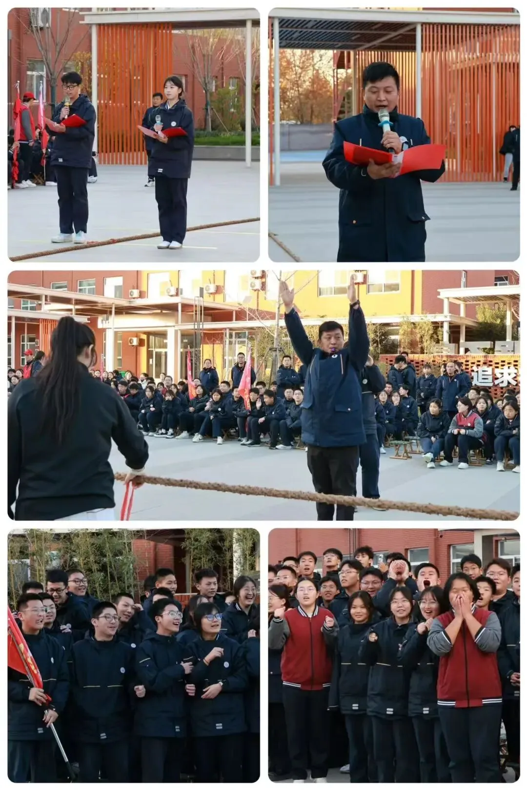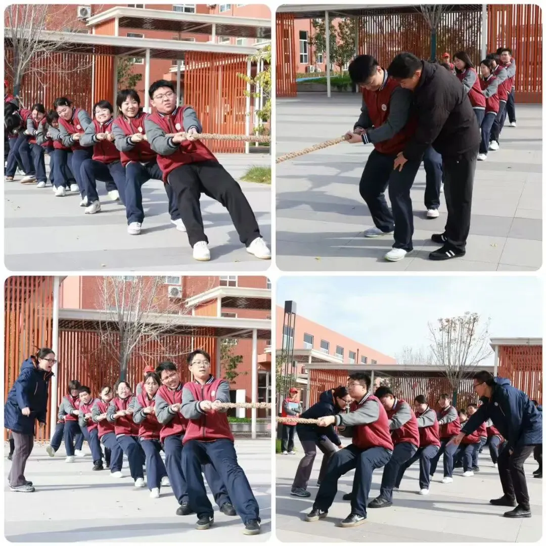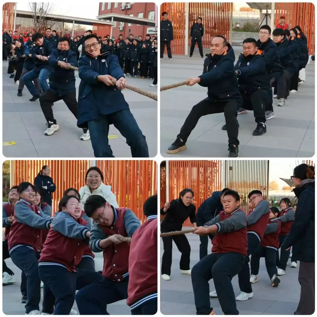 巅峰对决环节,双方队员咬紧牙关、全力以赴,经过激烈角逐,最终2404班、2510班荣获冠军,2405班、2503班荣获亚军,2402班、2507班荣获季军。随后,教师组比赛精彩上演,高一组与高二组教师代表队同台竞技,老师们紧握长绳、身体后倾,在整齐口号中合力拼搏,赛场瞬间被师生们的欢呼呐喊声淹没,展现了教职工活力满满的精神面貌。